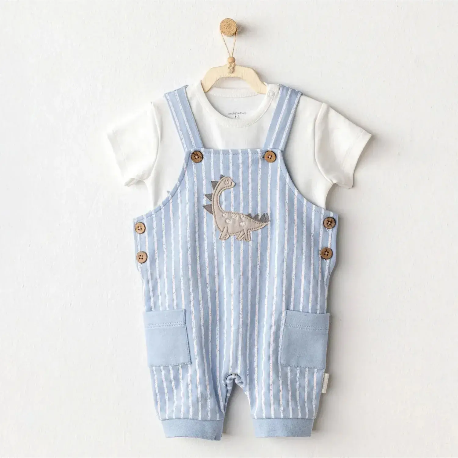 Andy Wawa Erkek Bebek Salopet Takım Dino Mavi