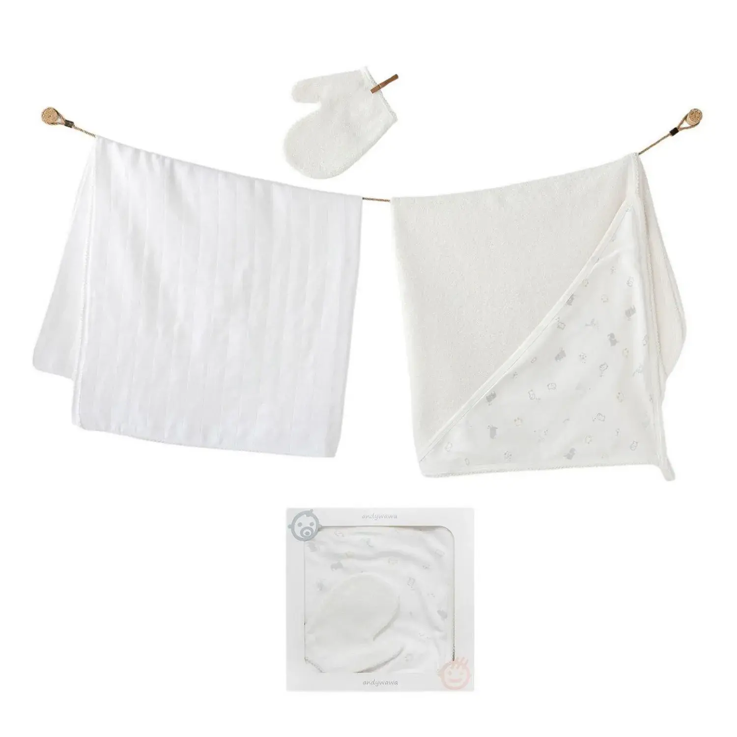 Andy Wawa Erkek Havlu Takımı 3lü Müslin Ekru