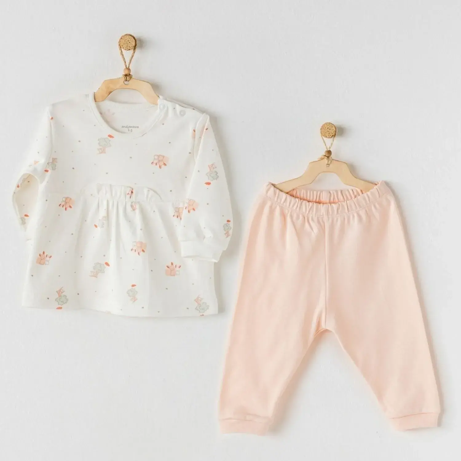 Andy Wawa Kız 2li Takım Hiding Rabbits Ekru - Somon