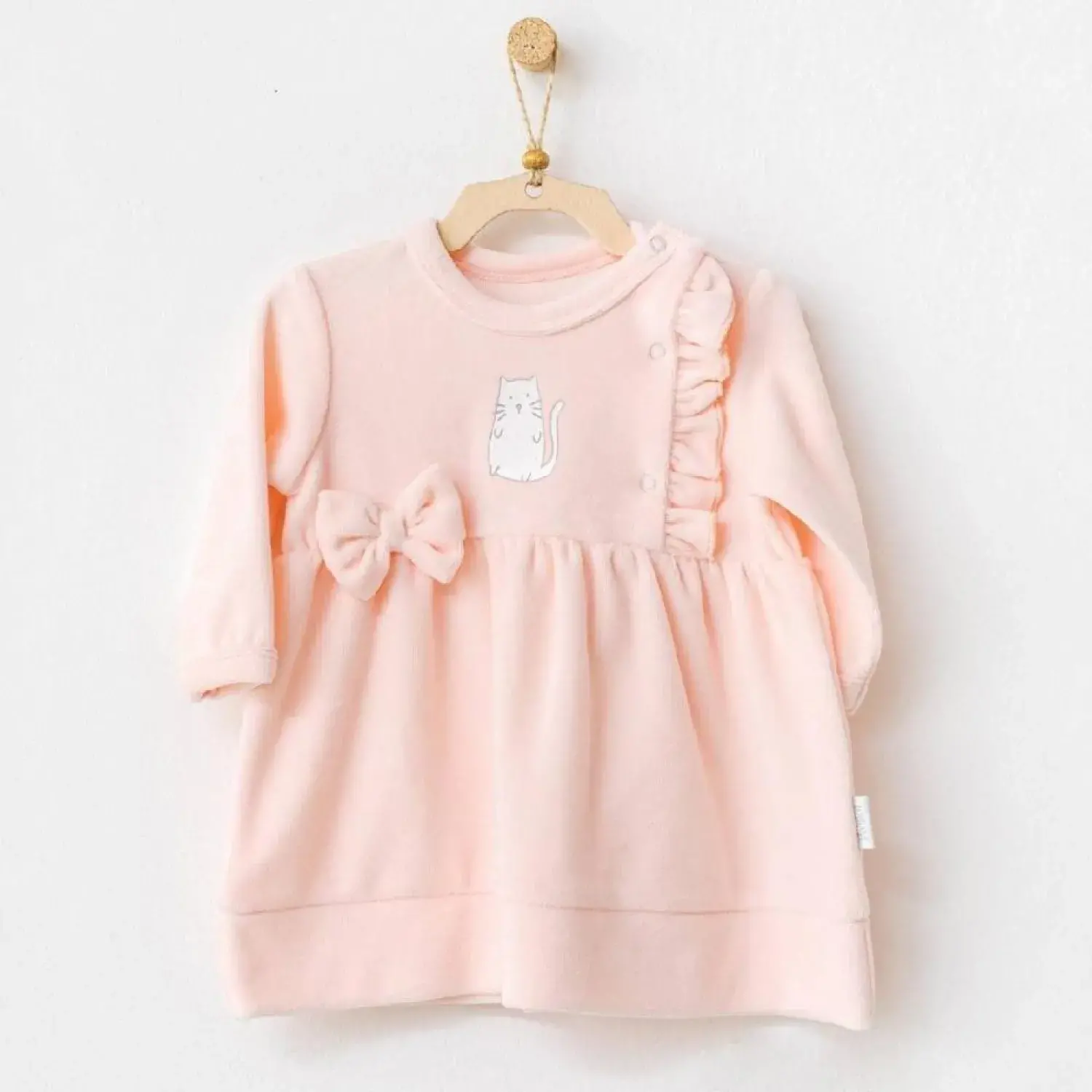 Andy Wawa Kız Elbise Kadife Meow Pembe