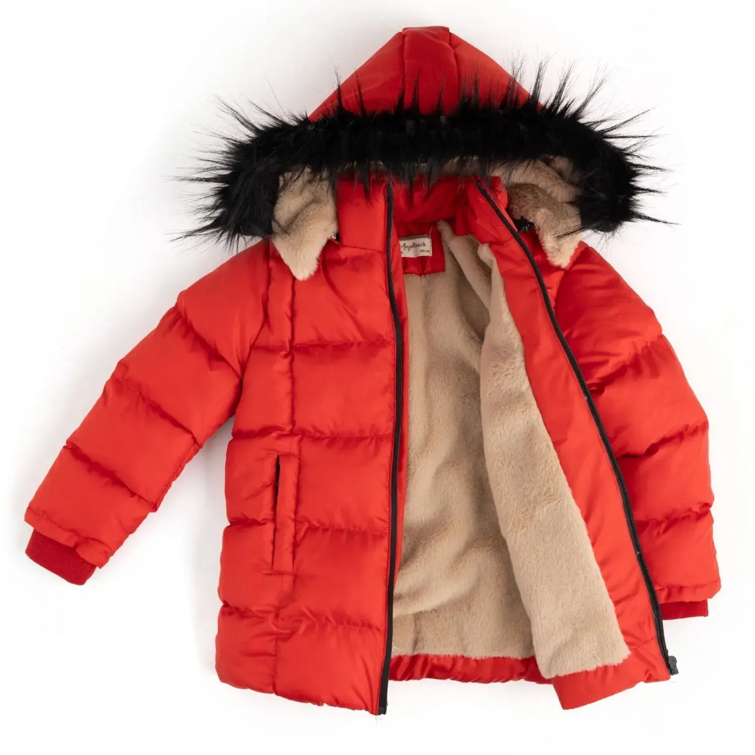 Angeltouch Kız Su Geçirmez Kaban Kare Desen Kırmızı