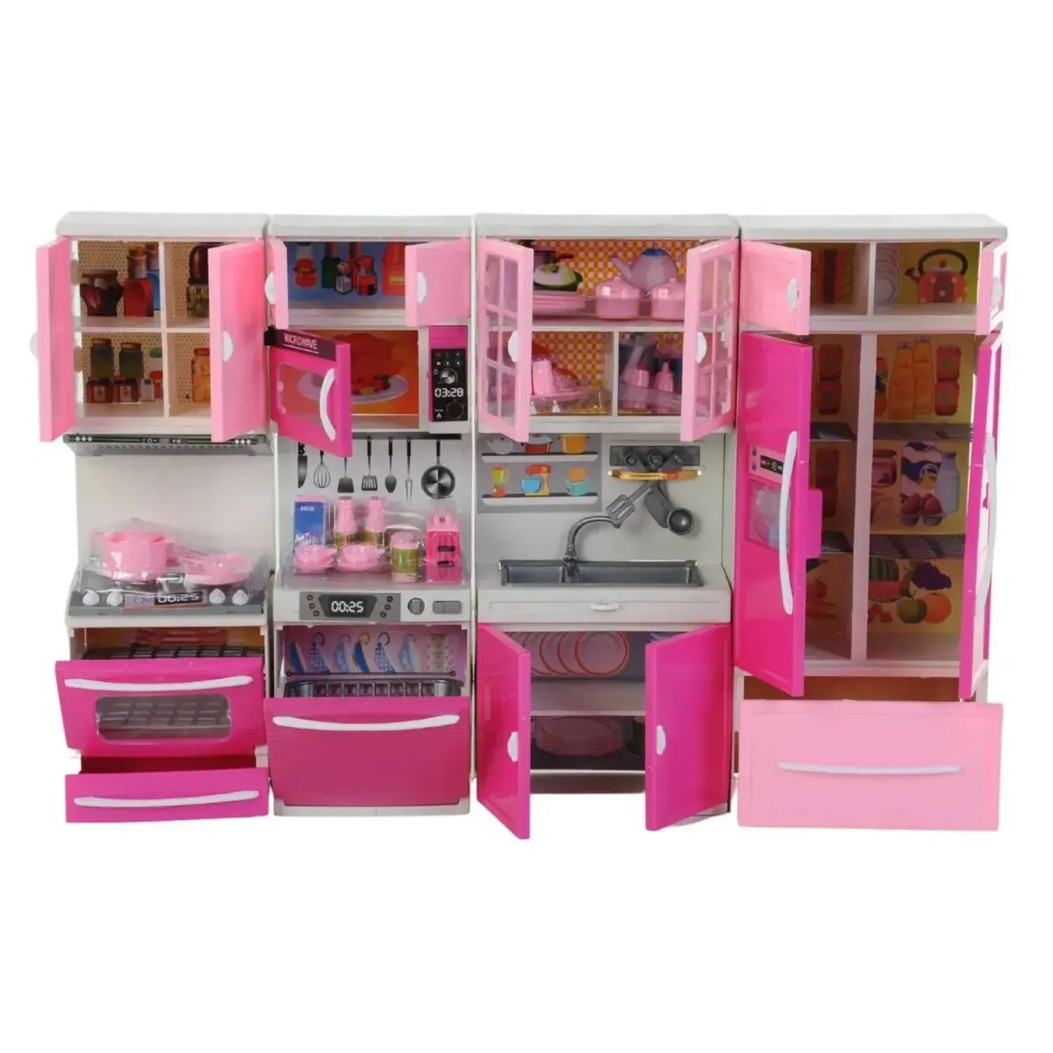 - Çocukların ilk mutfak deneyimlerini eğlenceli ve güvenli bir şekilde yaşaması için tasarlanmış, 4 parçadan oluşan oyuncak bebekli mutfak seti