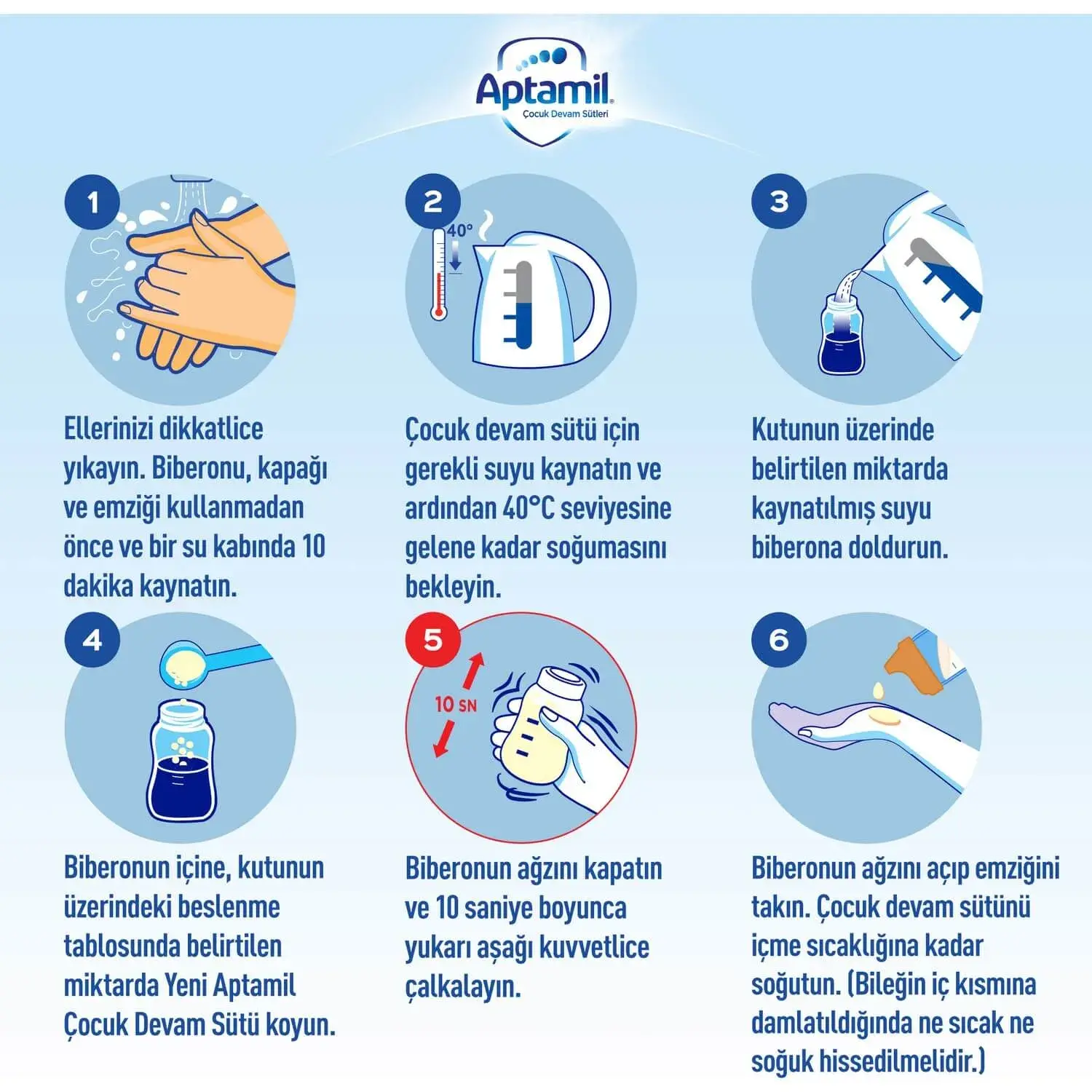 Doktorunuz farklı bir öneride bulunmadığı takdirde 6. ayın sonunda Aptamil 2 Devam Sütü’ne geçebilirsiniz.