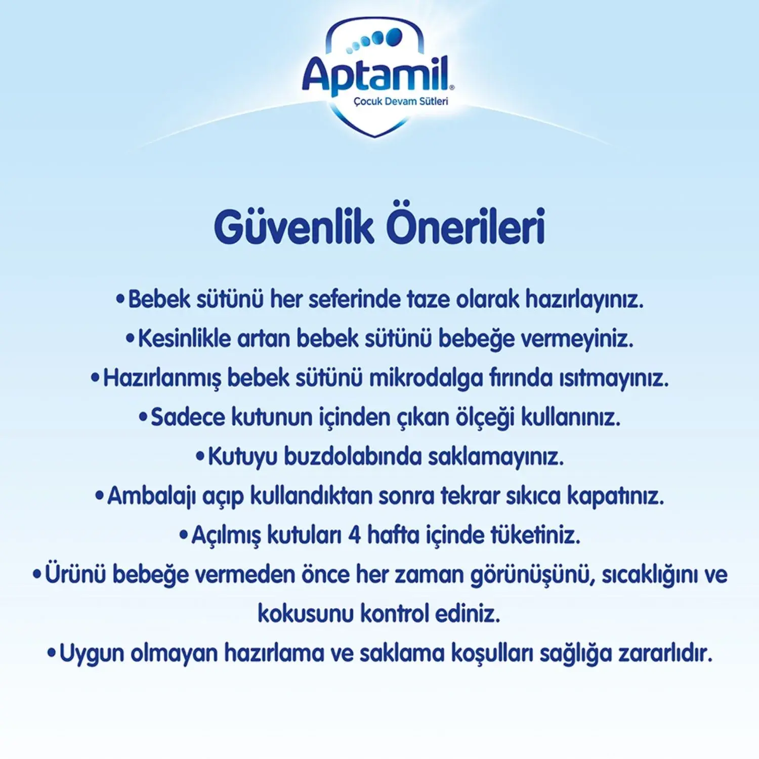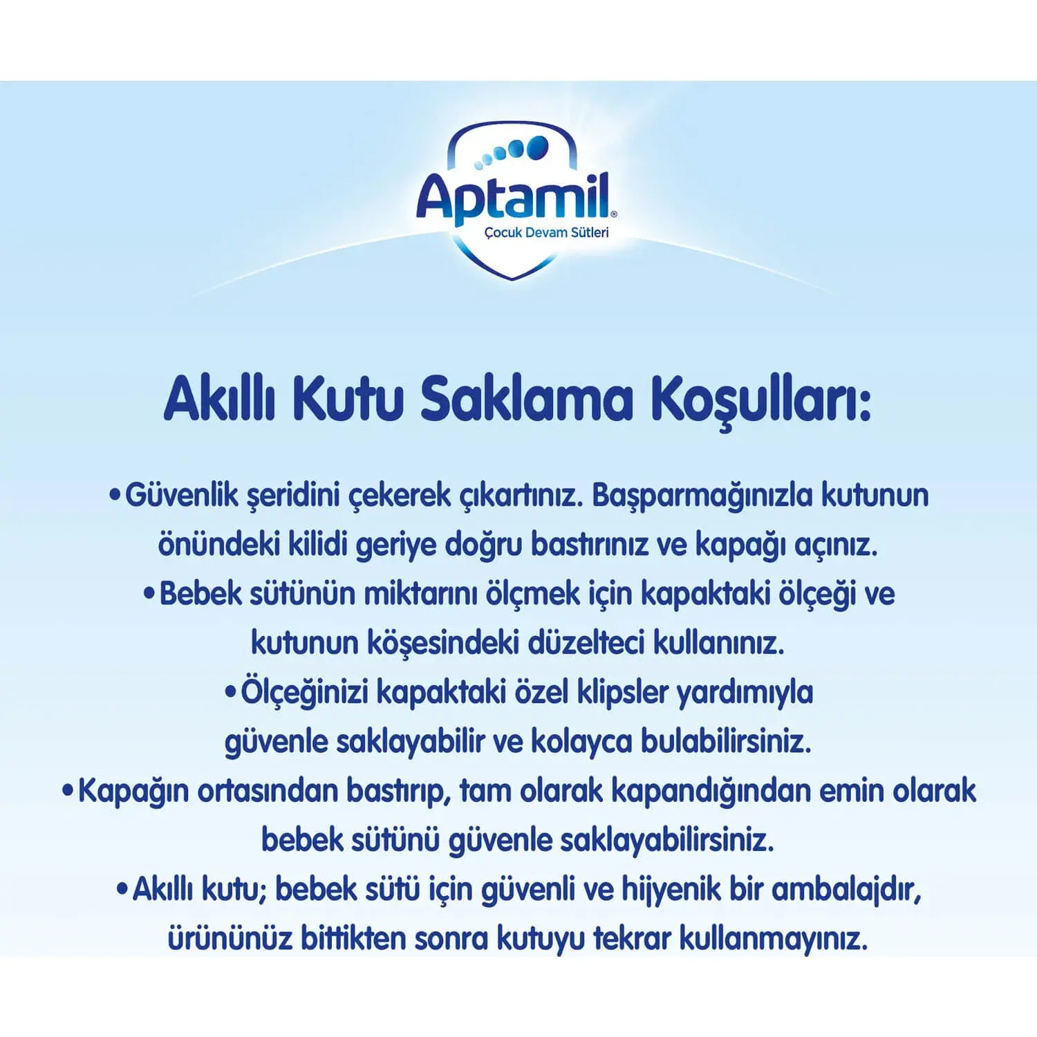 Aptamil 1 Bebek Sütü ilave şeker içermez. Etiket üzerinde yer alan şekerler bilgisi mevzuat gereği zorunlu gösterim şeklidir. Doğal olarak sütte bulunan süt şekeri yani laktozu ifade etmektedir. (Karbonhidrat kaynağı %100 laktozdur.)