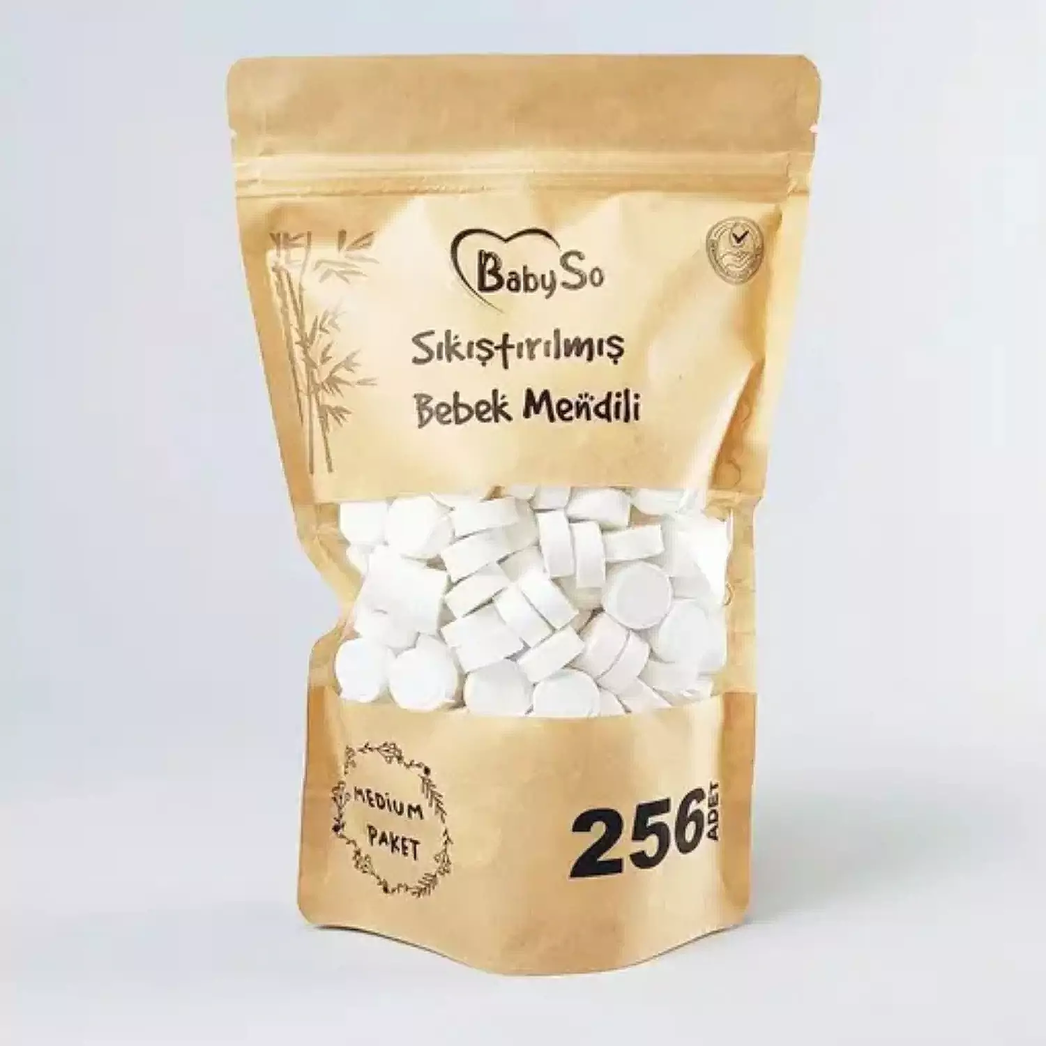 Paket içeriğinde 256 adet sıkıştırılmış kuru mendil bulunmaktadır.