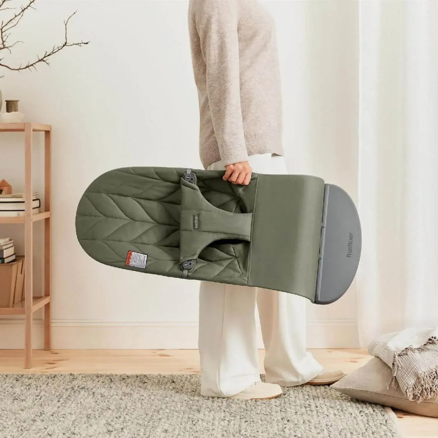 - BABYBJÖRN® Bliss Petal Serisi ana kucaklarında ayrıca ayırt edici olarak açık gri şase kullanıldı.