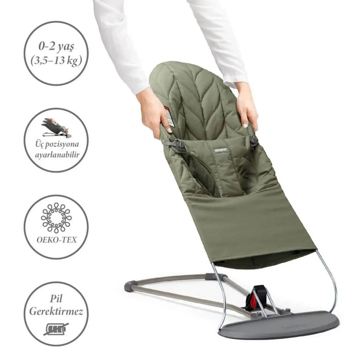- Bebeğinizin vücuduna göre şekillenen oturma kısmı ergonomik olarak tasarlanmıştır.