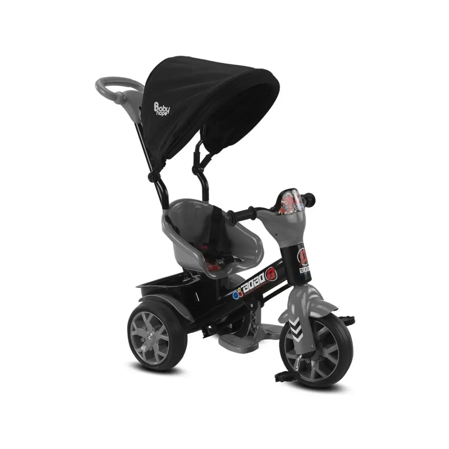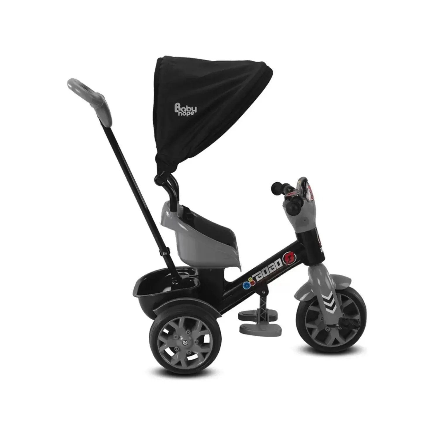 Babyhope Bobo Tenteli İtmeli Bisiklet Gri