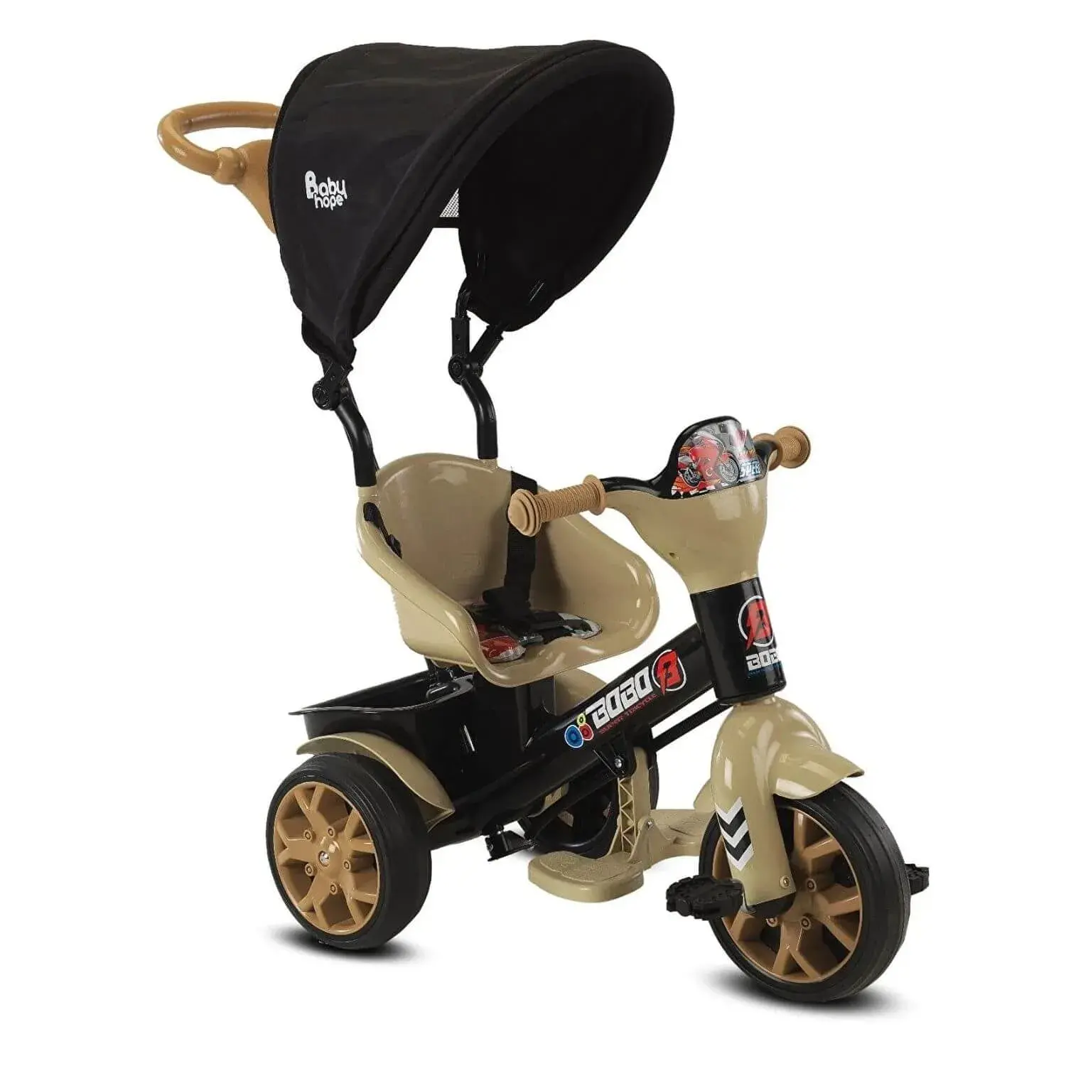 Babyhope Bobo Tenteli İtmeli Bisiklet Kahverengi