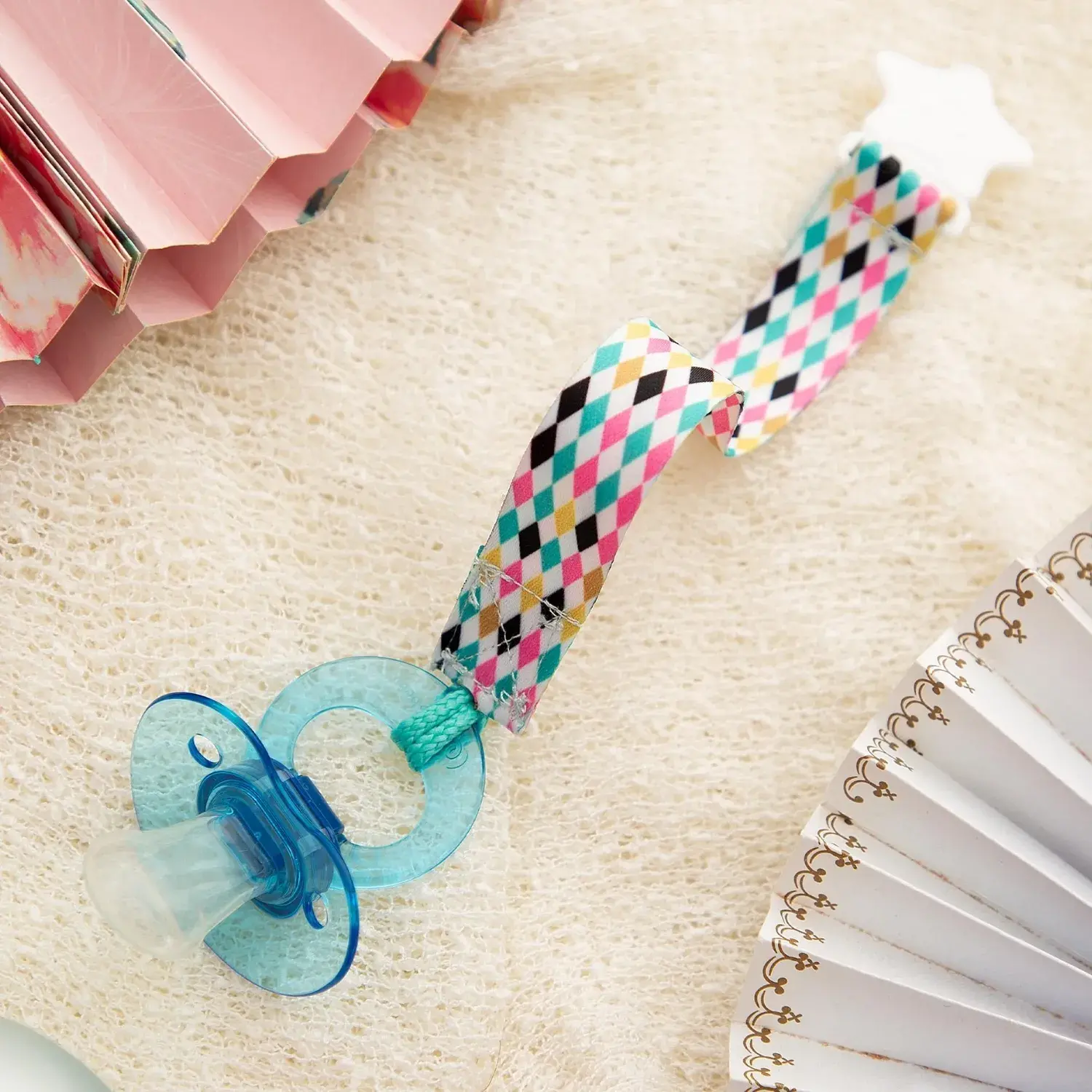 Babyjem Emzik Tutacağı Desenli Mavi Kurdele