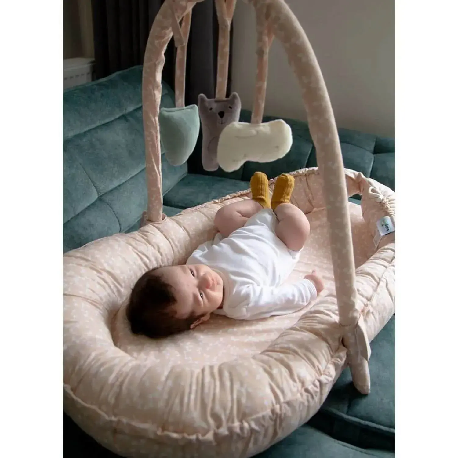 Sallanan oyuncaklar yatağında keyifli vakit geçirmesini sağlamaya yardımcı olur