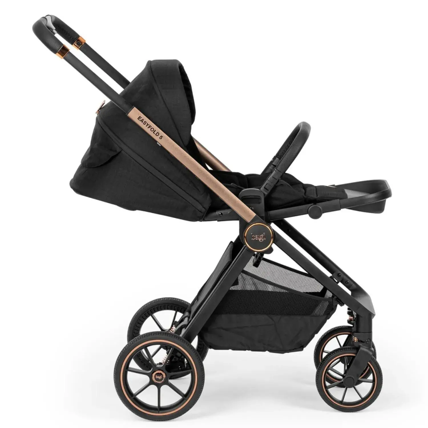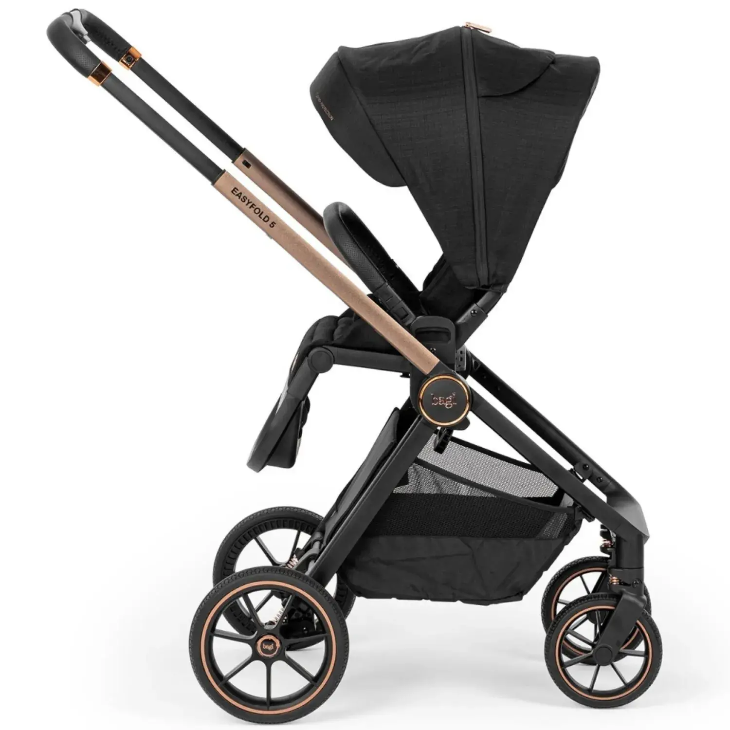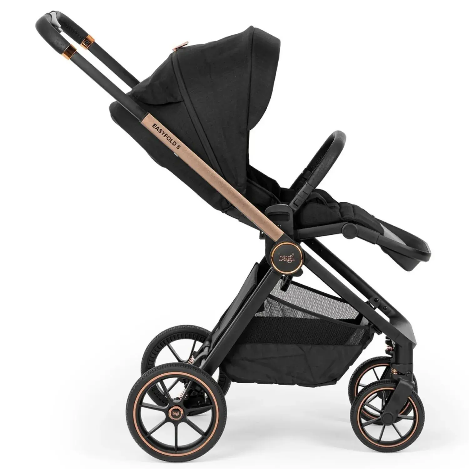 Şase malzemesi olarak kullandığı kaliteli, sağlam ve hafif krom karışımı ve estetik tasarım Easyfold 5 modeline ekstra bir dizayn getirmiştir. Tekerleklerinde bulunan geliştirilmiş süspansiyon sistemi ve kauçuk teker yapısı ile siz ebeveynlere konforlu sürüş sağlar.
