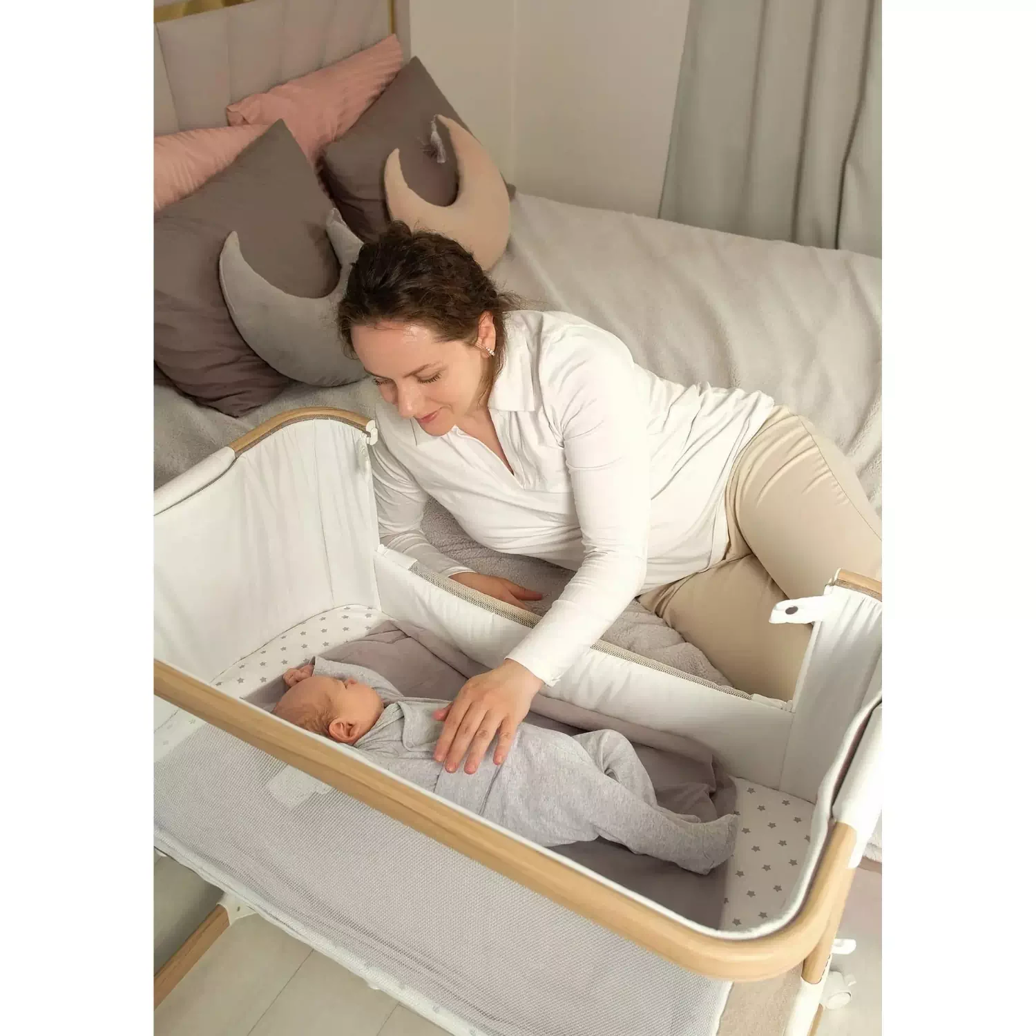 Anne yanı beşik tipi; bebek taşıma sepeti: Doğumdan 4-6 aylığa kadar olan bebekler için. Ebeveyn yatağına kolayca takılır (kayışlar dahildir), böylece rahat beslenme ve gözetim sağlanır. Maksimum taşıma kapasitesi: 9 kg.
