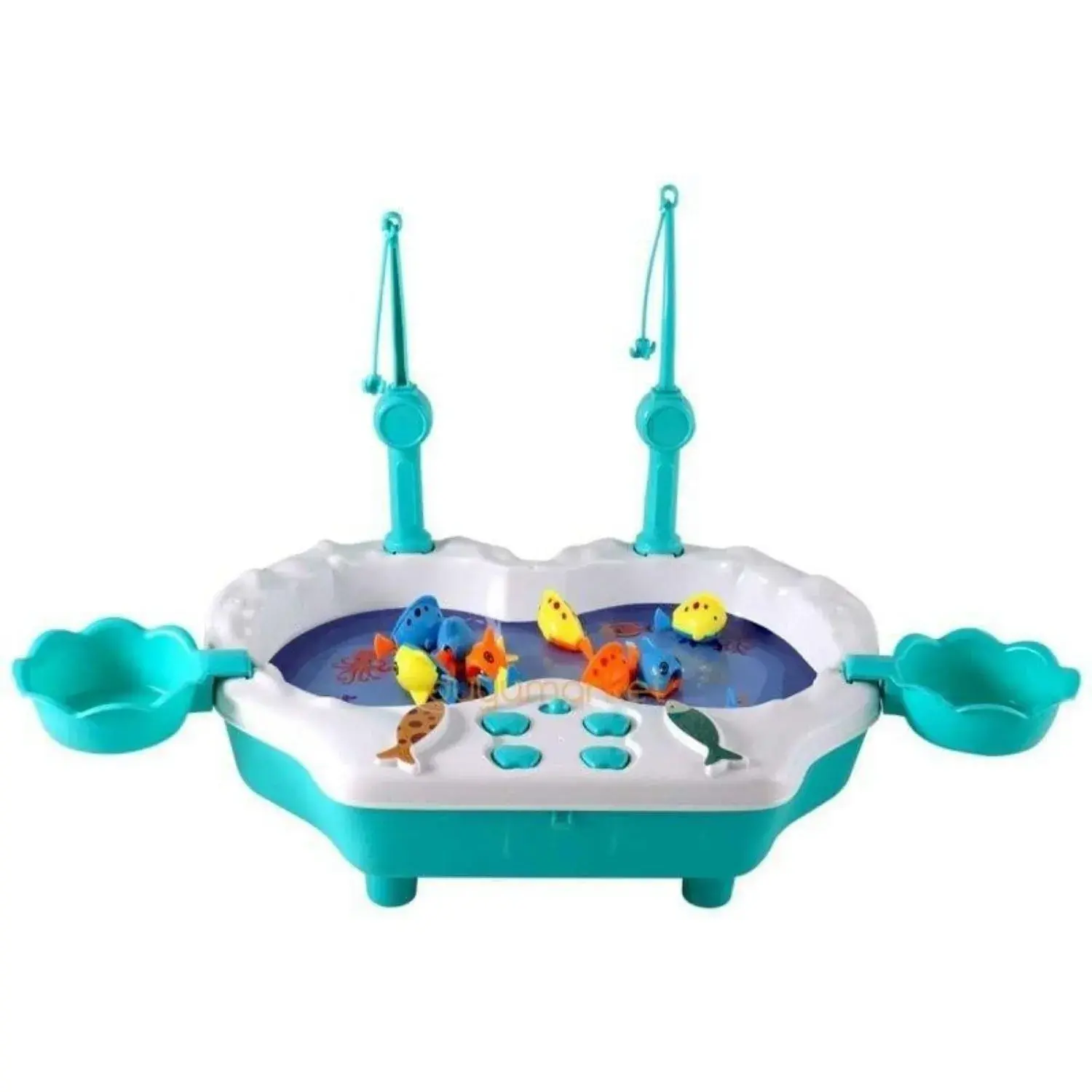 Balıklar havuzda yüzerken, çocuklar balıkları olta ile yakalayabilirler ve balıklarını kendi bölümlerine koyabilirler.