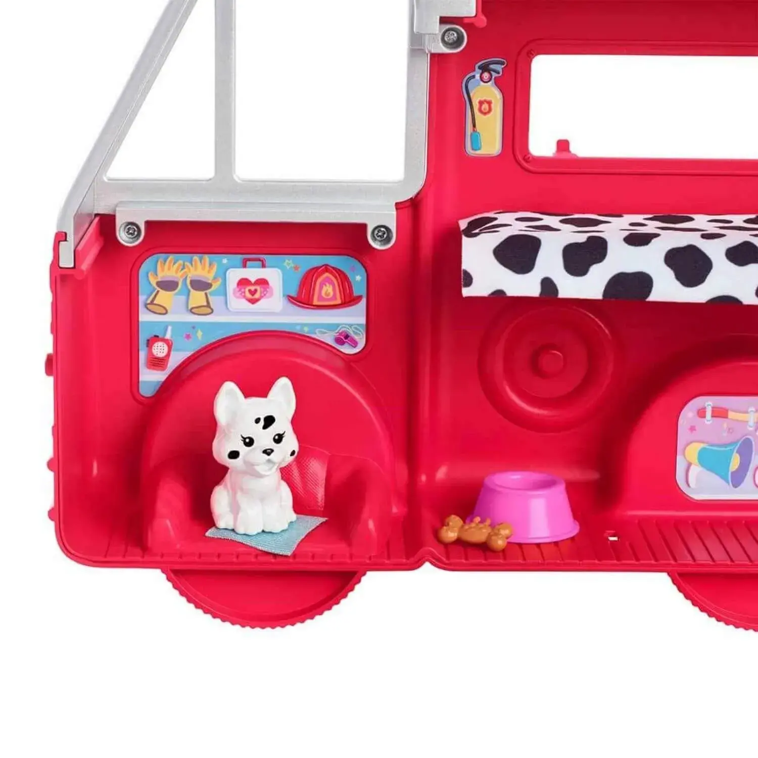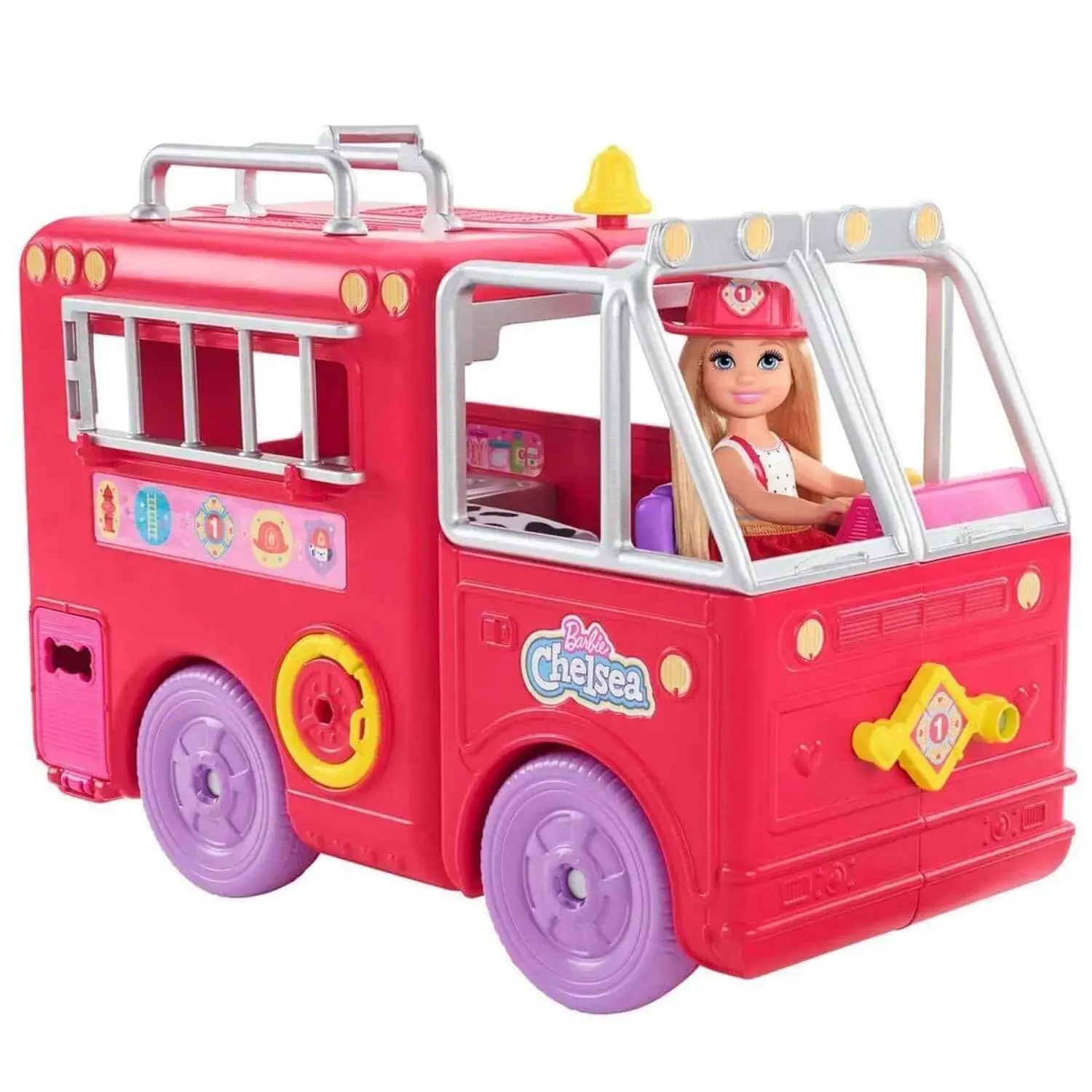 Birçok hikaye anlatımı seçeneği sunan açılabilir tasarıma ve dönen tekerleklere sahip bu itfaiye aracıyla bebeğin kahramanlık anlarına eşlik edin. Çocuklar kurtarma merdivenini ve katlanabilen yangın söndürme hortumunu kullanarak duruma müdahale edebilir. Daha sonra oyun setini açıp lavabo, ilk yardım bölümü, ranza yatak ve diğer aksesuarları ortaya çıkarabilir ve kahramanlık hikayelerini çoğaltabilirler. Çıkarılabilir eteği, kaskı ve çizmeleriyle sevimli bir itfaiyeci üniforması giyen Chelsea ve hayvan dostu yavru köpek yeni kahramanlık maceraları için yola çıkmaya hazır!