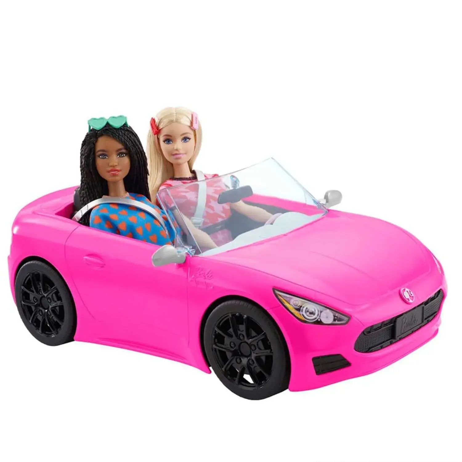Pembe renkli üstü açık Barbie arabayla düşlediğiniz yolculuklara çıkıp dilediğiniz macerayı yaşayabilirsiniz. Bu üstü açık şık araba, zarif tasarımı ve modern ayrıntılarıyla tüm hikaye yaratıcılarına ilham verir. Üstü açık araba; spor tasarıma, gerçeğe uygun ayrıntılara ve Barbie® tarzına özgü süslemelere sahiptir. Çocuklar iki kişilik arabanın koltuklarına bebeklerini (ayrı olarak satılır) oturtup kemerlerini bağlayabilir ve dönen tekerlekleri sayesinde yol almasını sağlayıp macera dolu yolculuklara çıkabilir. Bebekler ayrı satılır.