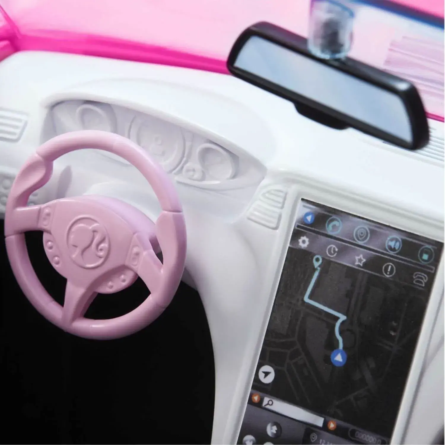 Özel plakası ve gümüş rengi Barbie amblemiyle bu araba, Barbie bebeğin kendine özgü ışıltılı tarzını sergiliyor.