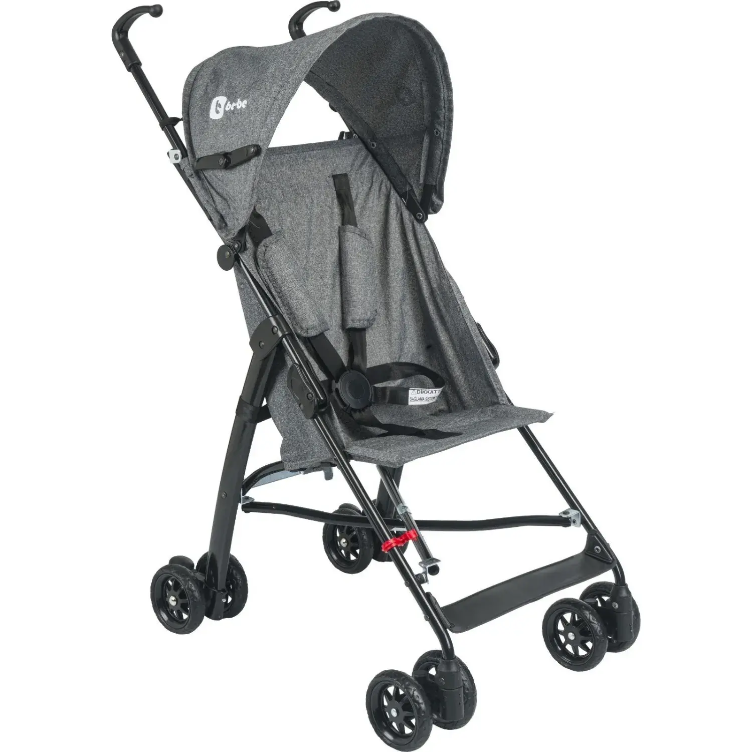 Be-Be Basic Pratik Ultra Hafif Katlanabilir Baston Bebek Arabası Siyah Gri