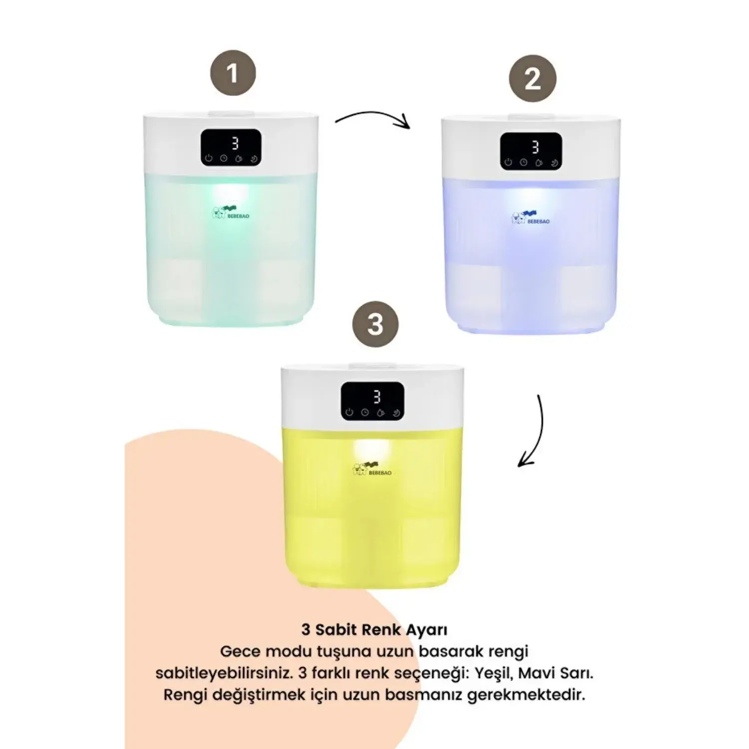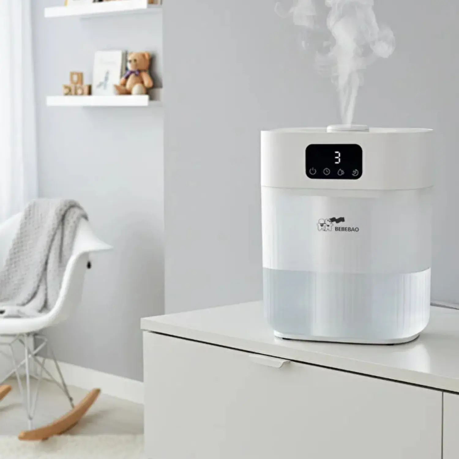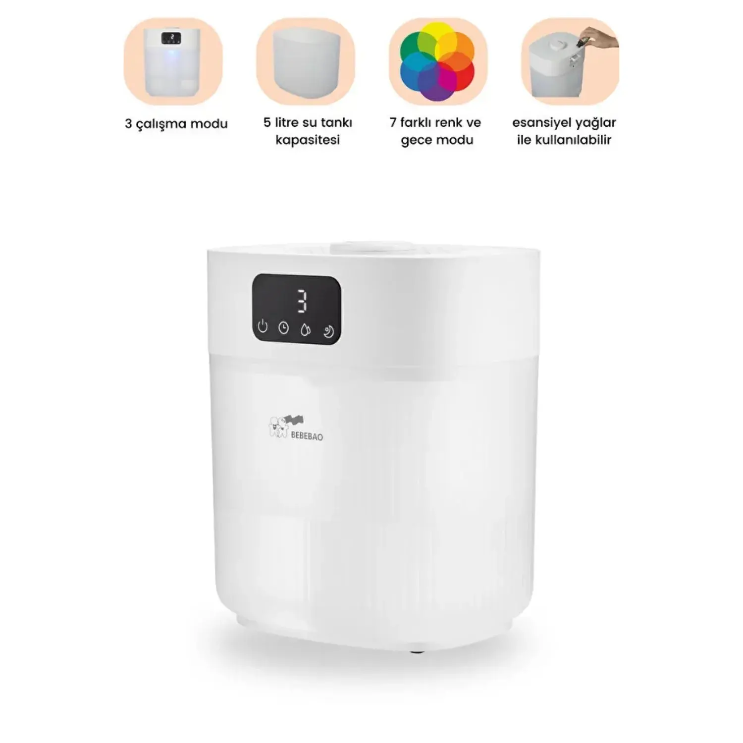 - Bebebao Pufi 5lt Ultrasonik 7 Renkli Buhar Makinesi Hava Oda Ortam Nemlendirici Dokunmatik Panel Aromatik Yağ Hazneli