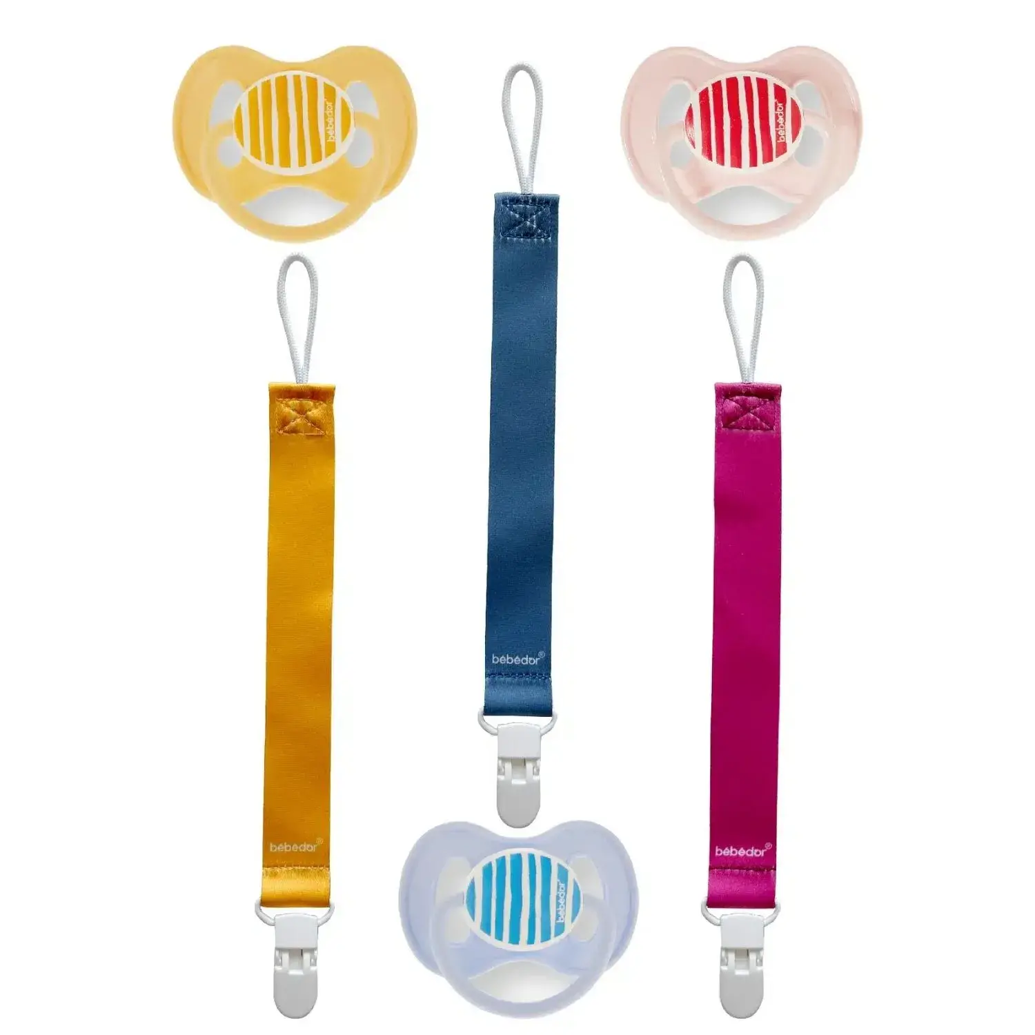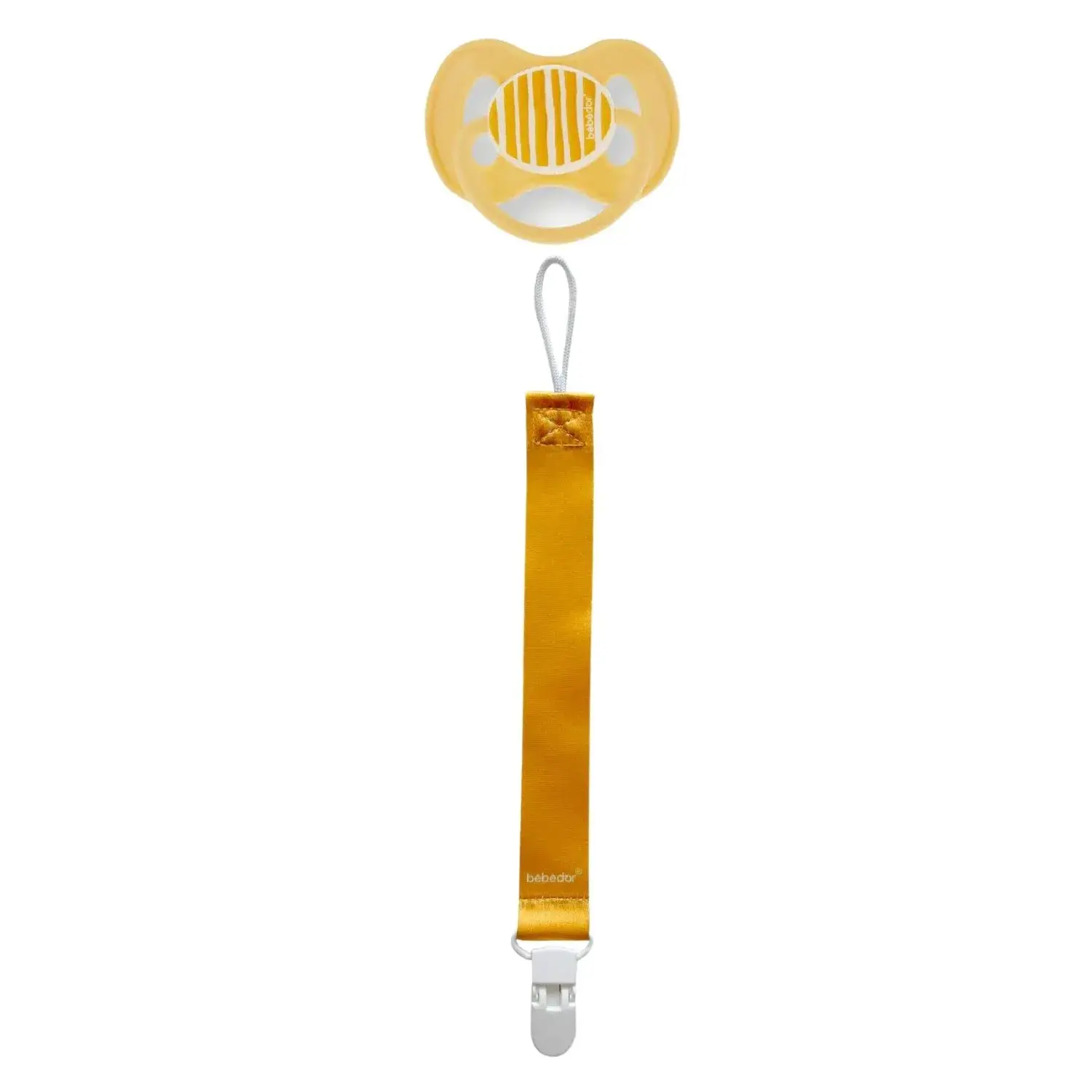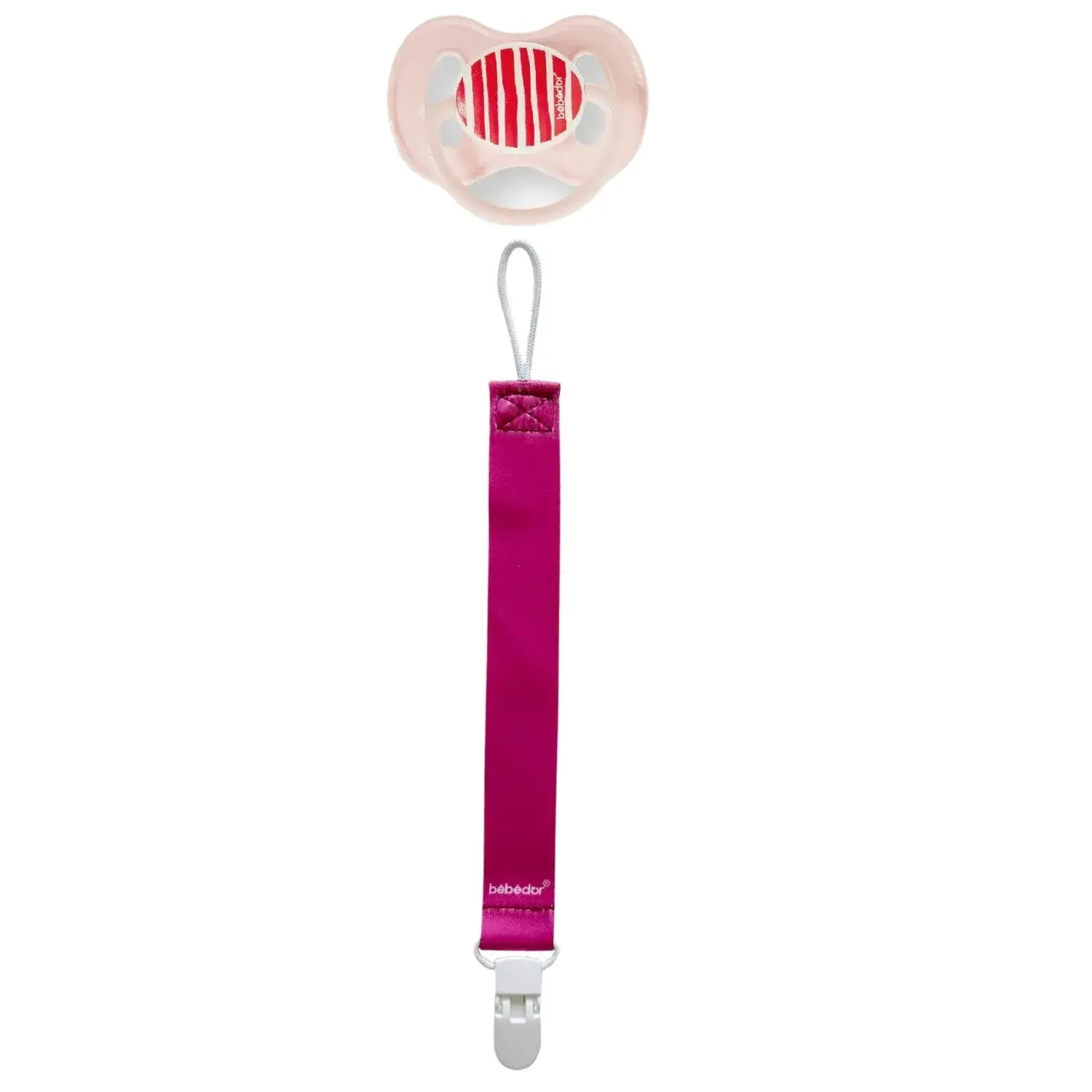 Emzik tutacağı, bebeğin giysilerine kolayca tutturulabilir.