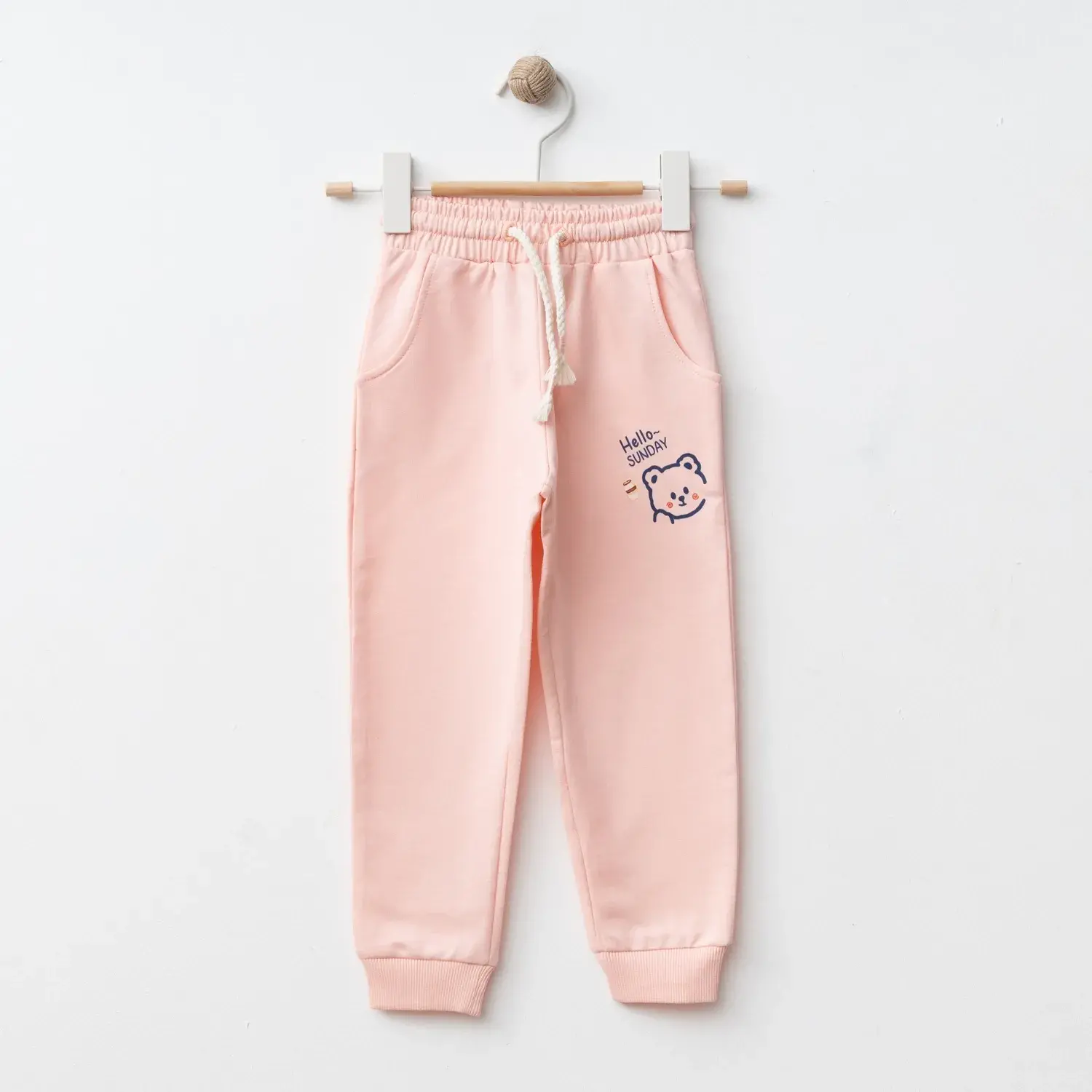 Bebolly Hello Sunday Ayıcıklı Baskılı Kız Çocuk Eşofman Altı Pudra