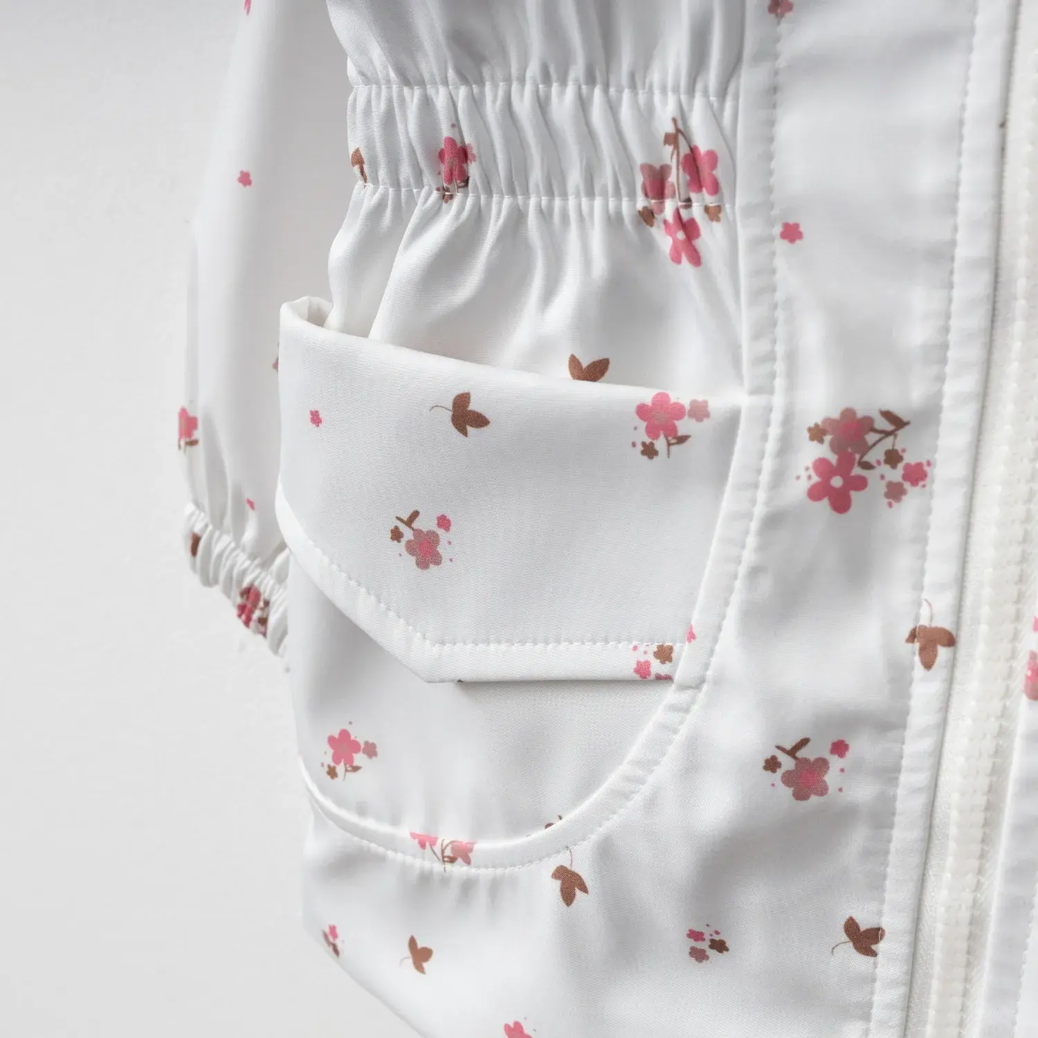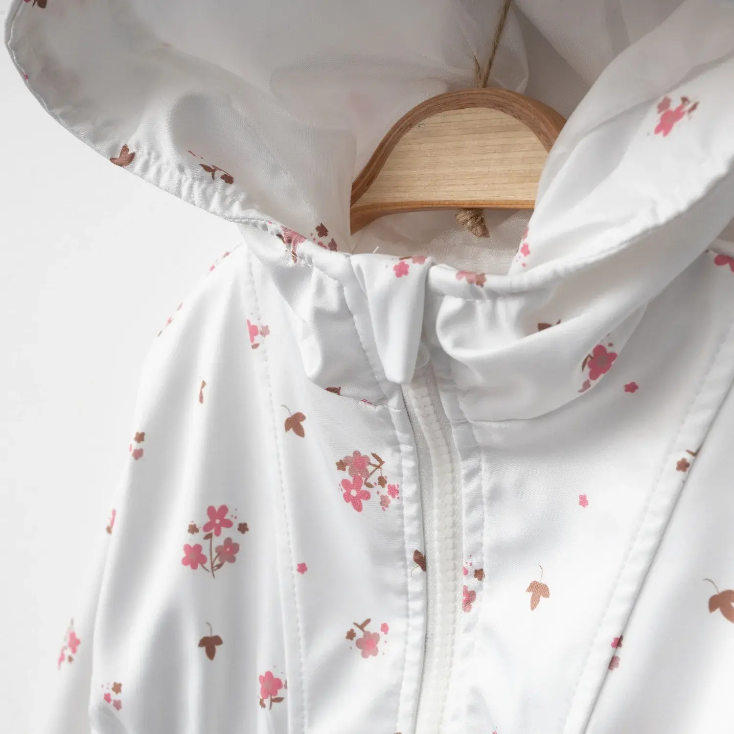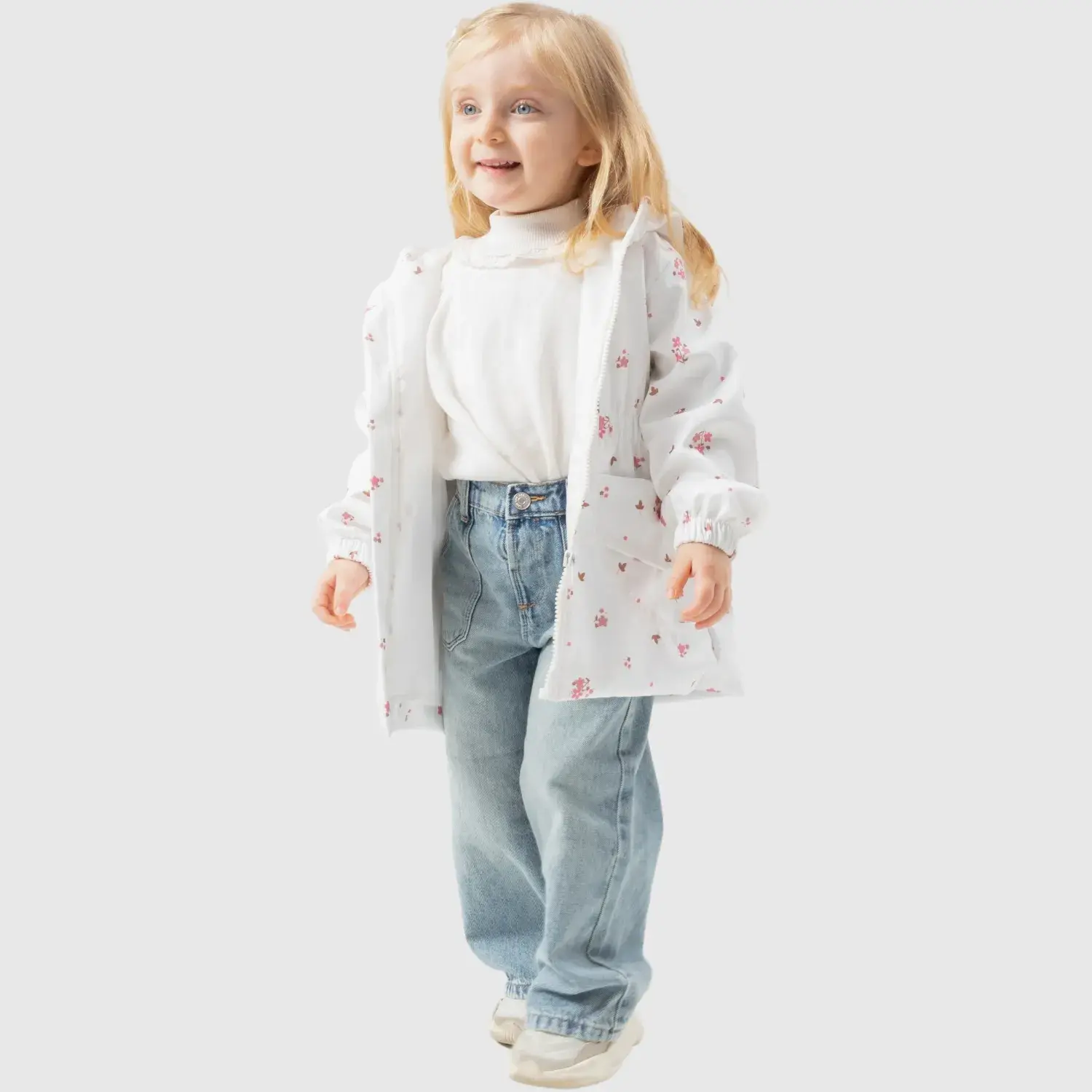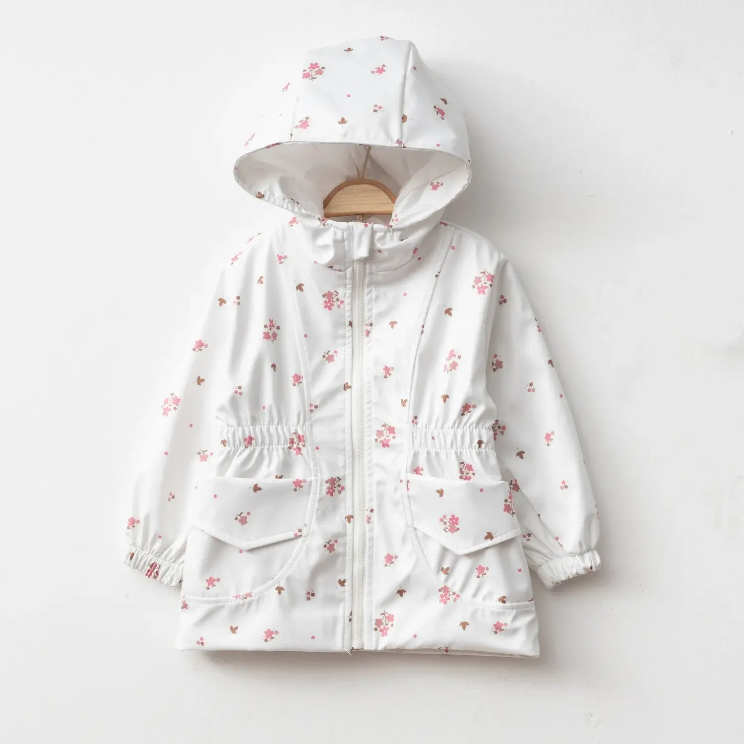 Bebolly Kız Bebek Kapüşonlu Cepli Yağmurluk Çiçekli Ekru