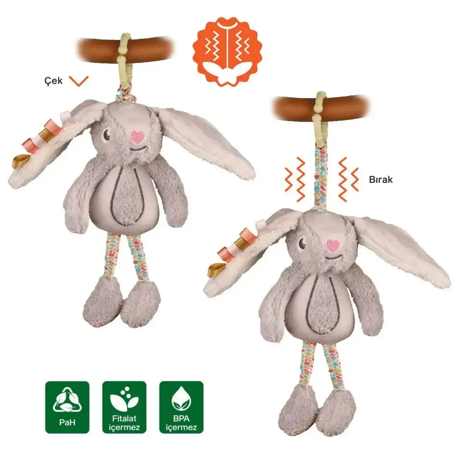 - Sevimli peluş tavşancık; bebeklerin her anında keyifli vakit geçirerek öğrenmesi için yol arkadaşı!