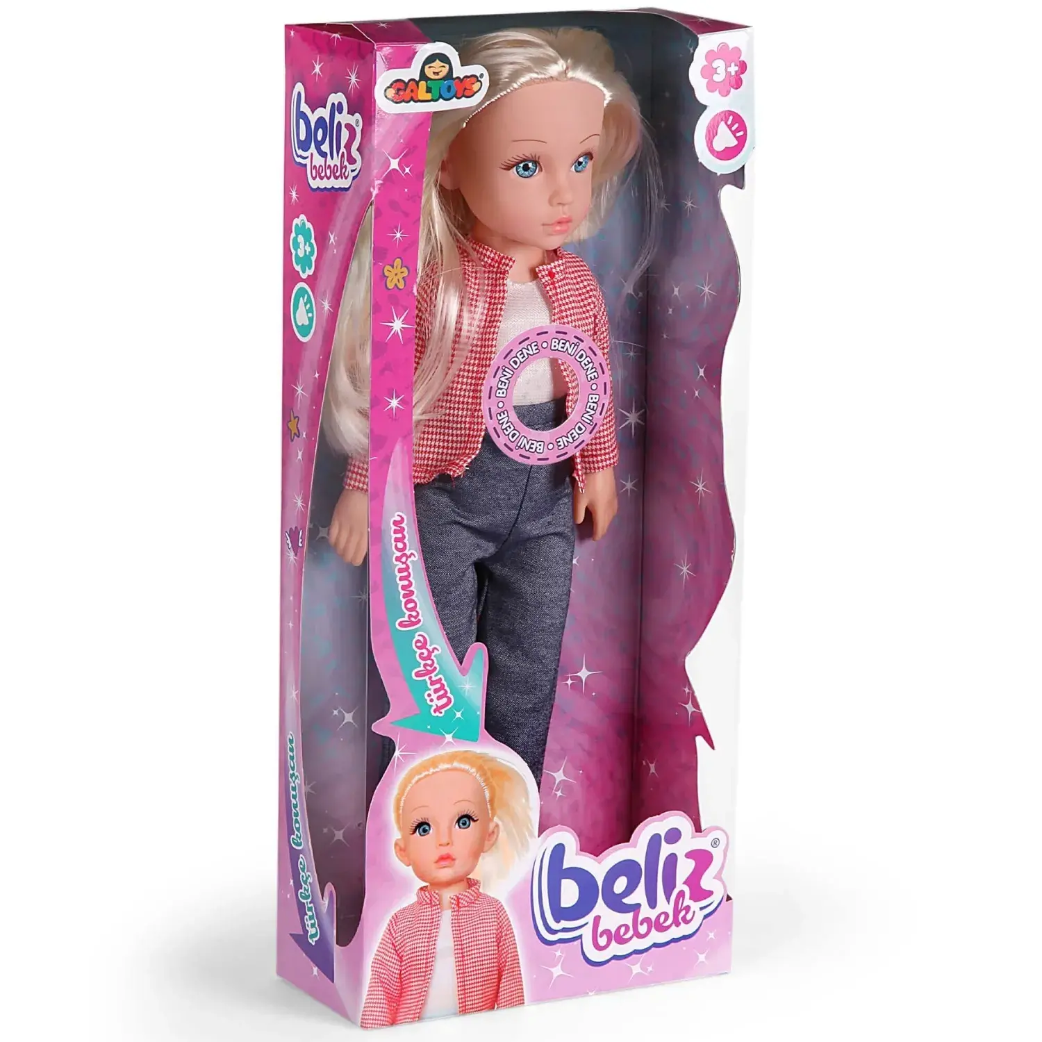 - 38 cm. uzunluğundaki Beliz Bebeğin karnında bulunan butona basarak onu konuştur.