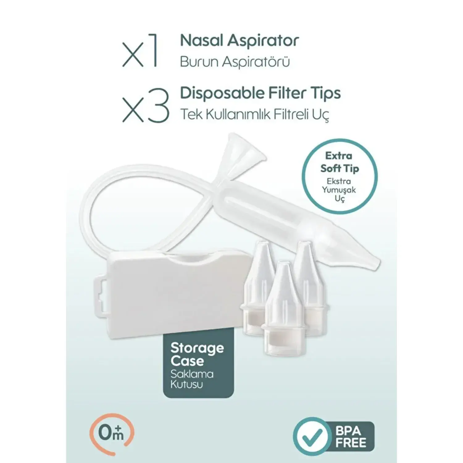 - Baby plus aspiratör, hijyen sağlayan absorban bir filtre içermektedir.