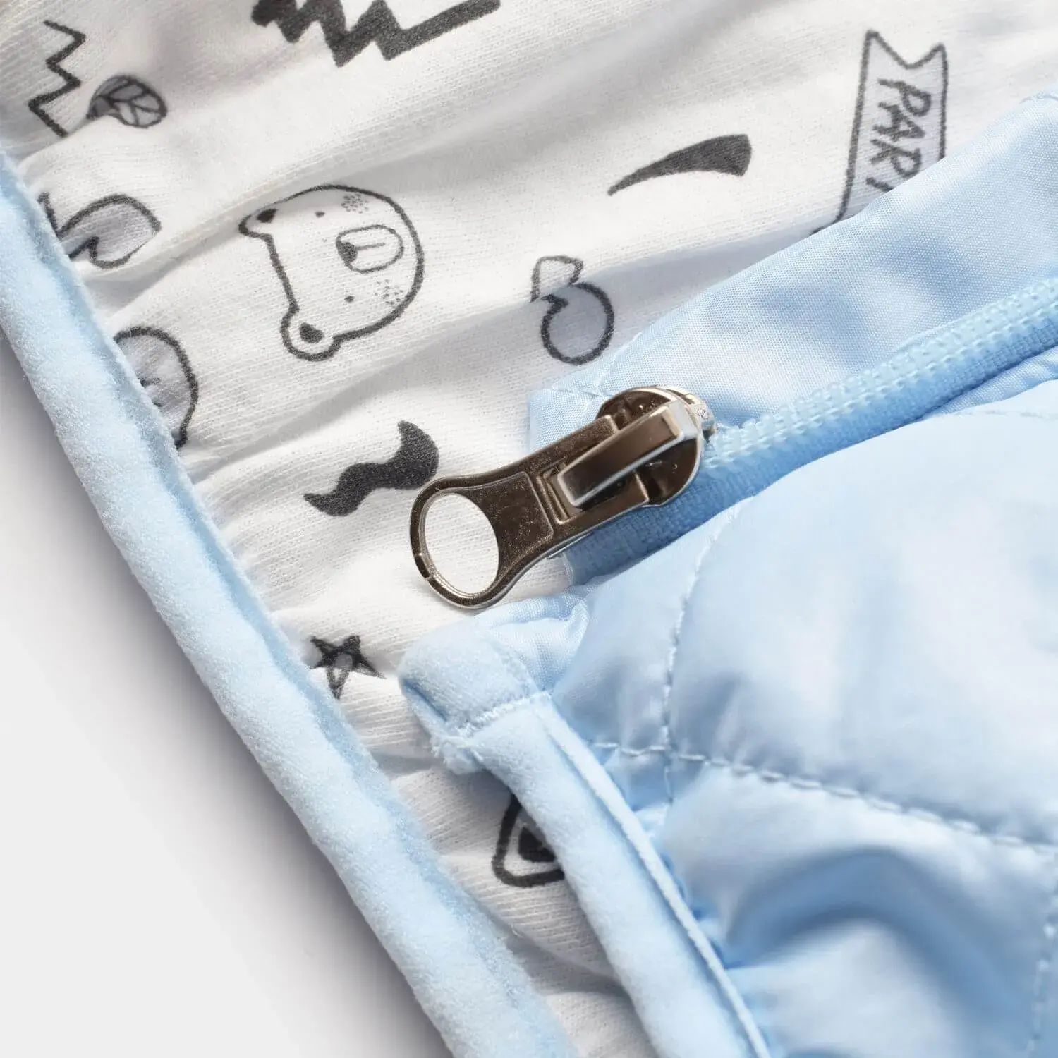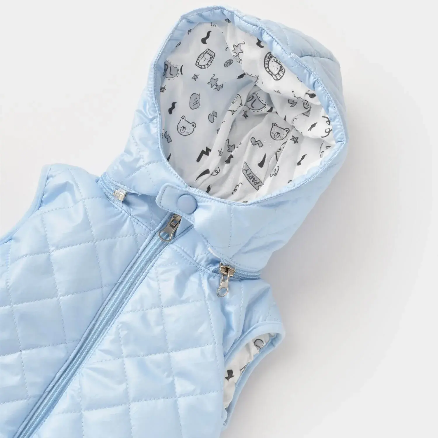 Bebek şişme yelek pamuklu kumaştan üretilmiştir.