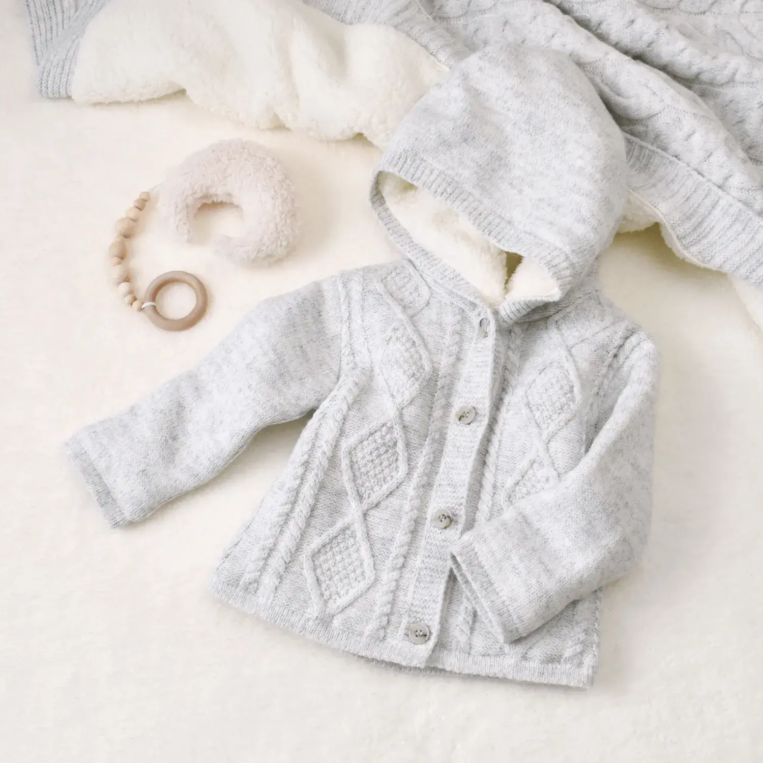 Bibaby Unisex Hırka Triko Desenli Welsoftlu Gri