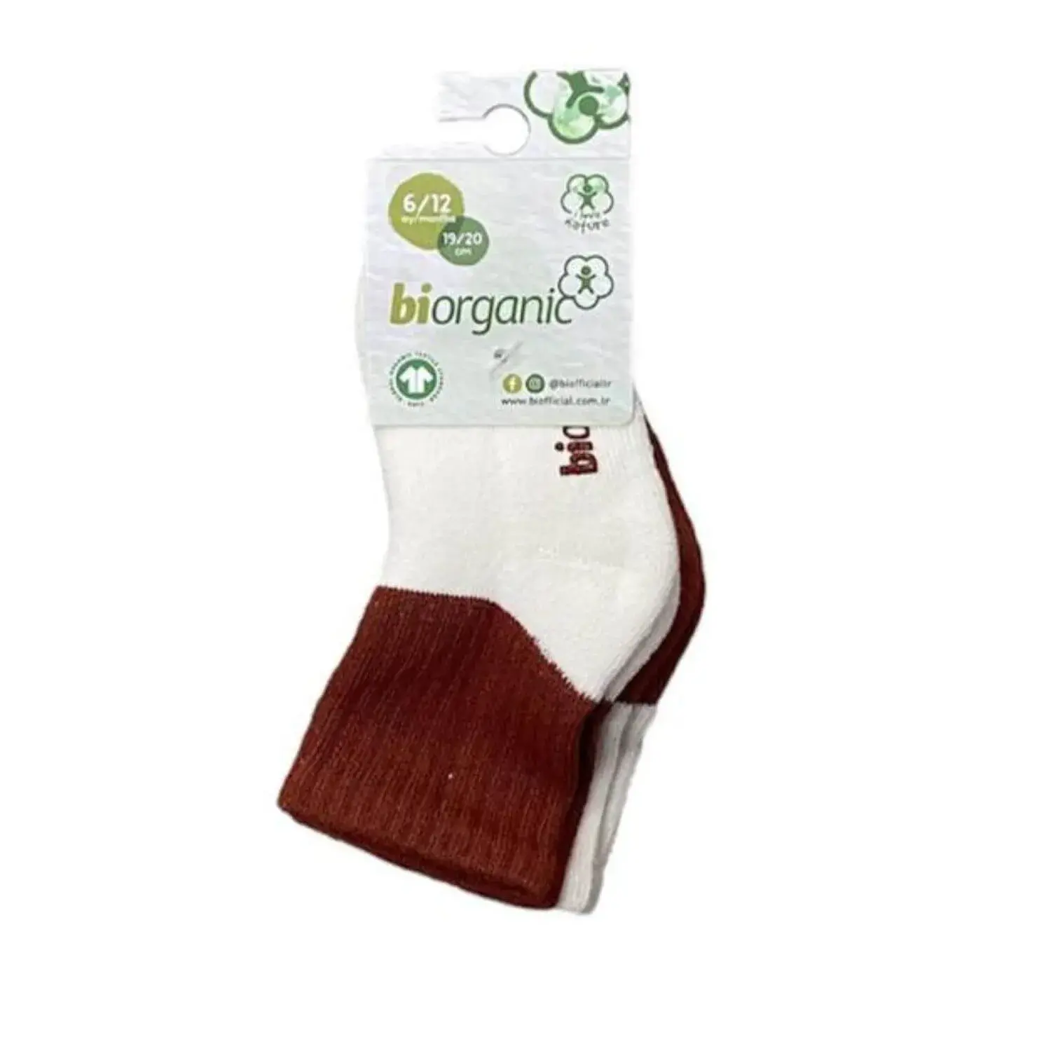 Bibaby Unisex Organik Çorap Soket Kaymaz Havlu 2li Ekru - Kiremit