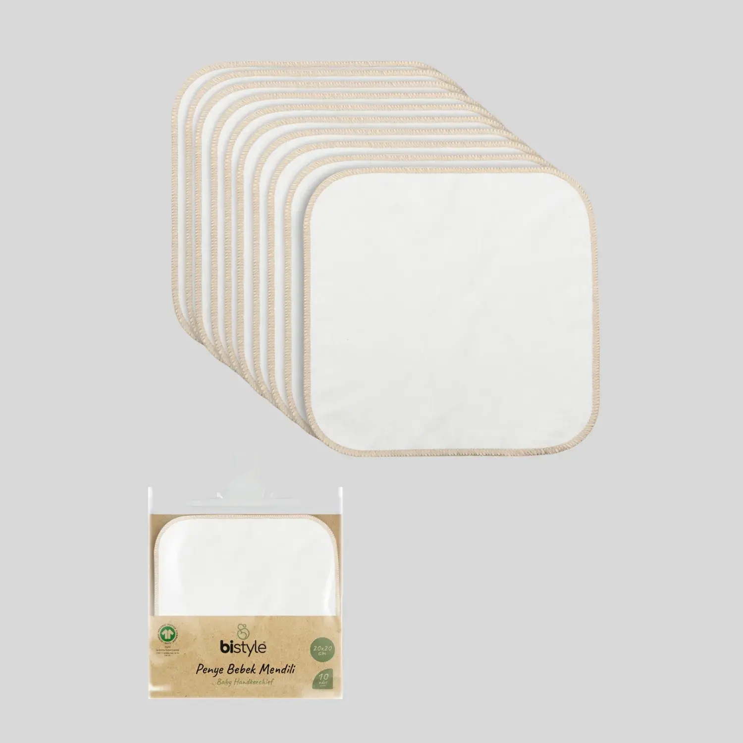 Bistyle Küçük Boy 10lu Bebek Mendil Penye Ekru