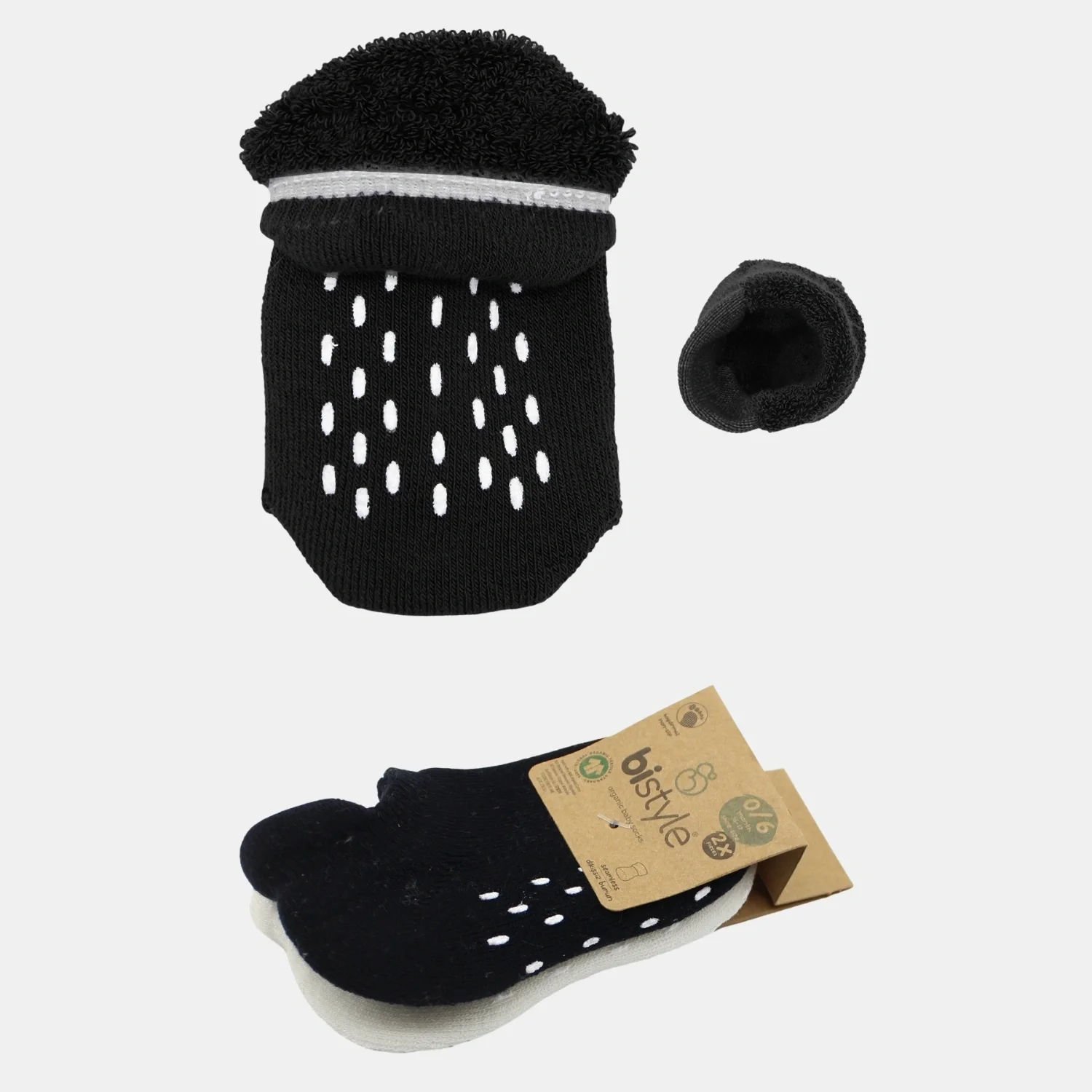 Bistyle Organik Çorap Sneakers Havlu 2li Kaymaz Basic Siyah - Ekru