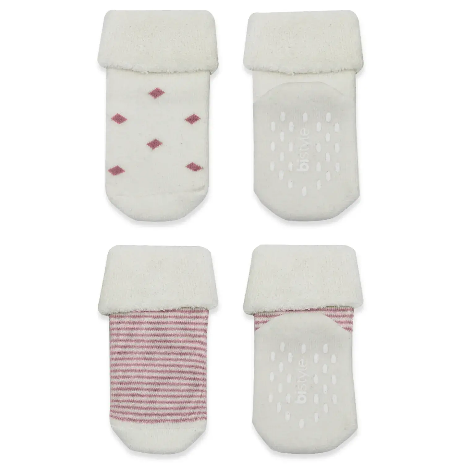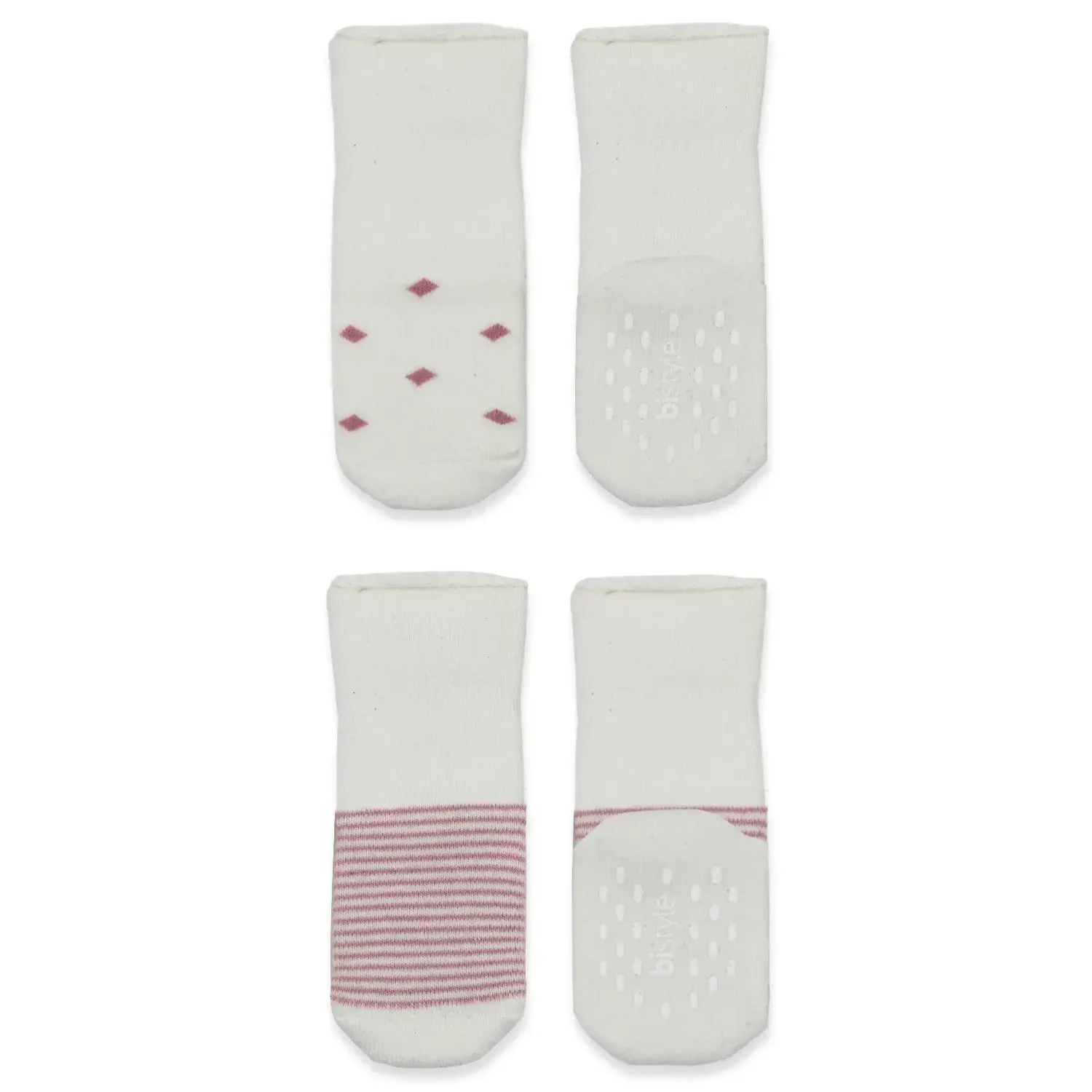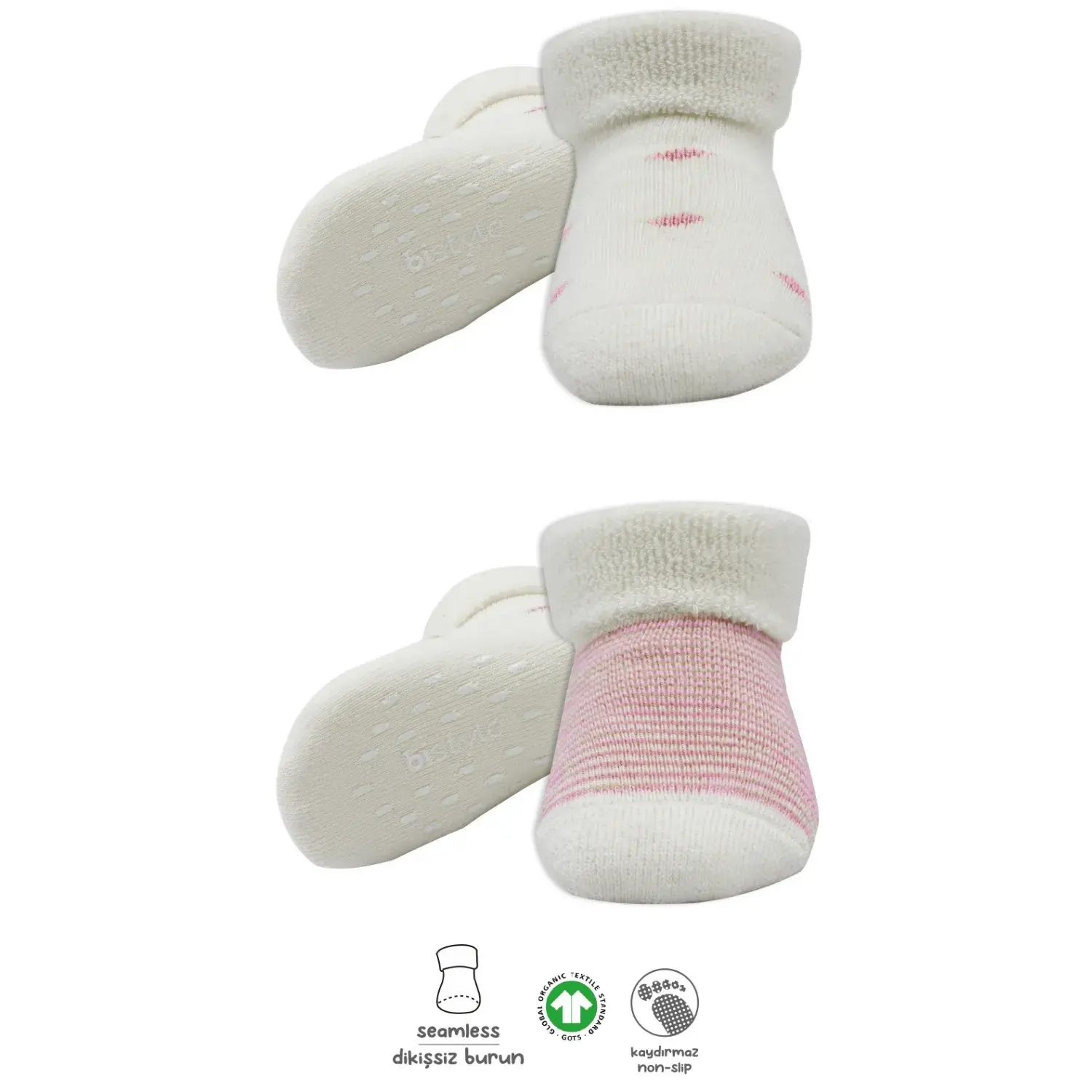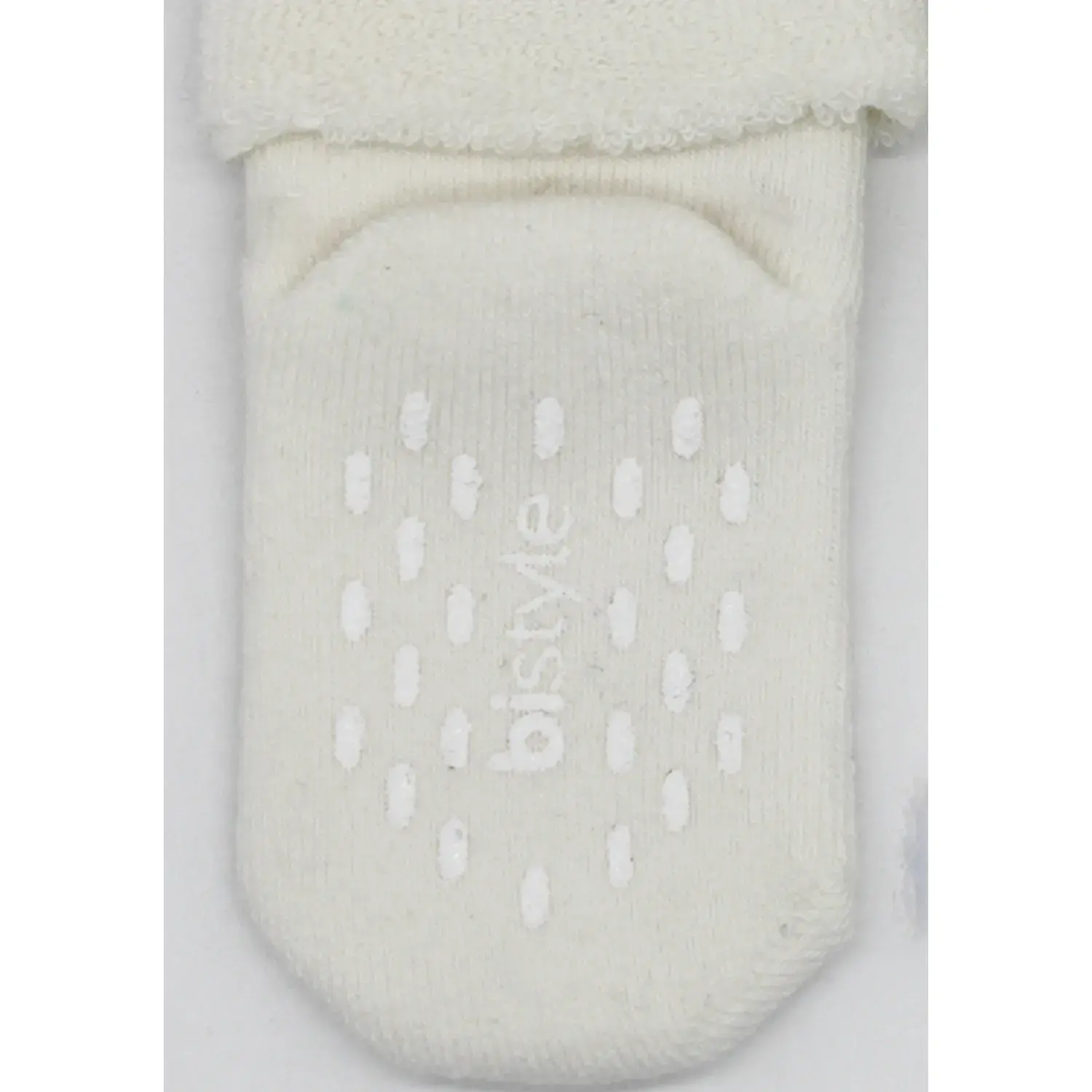 Bibaby Unisex Organik Çorap Soket Havlu 2Li Kaymaz Çemberli Kıvrık Puanlı Bistyle Pudra - Ekru