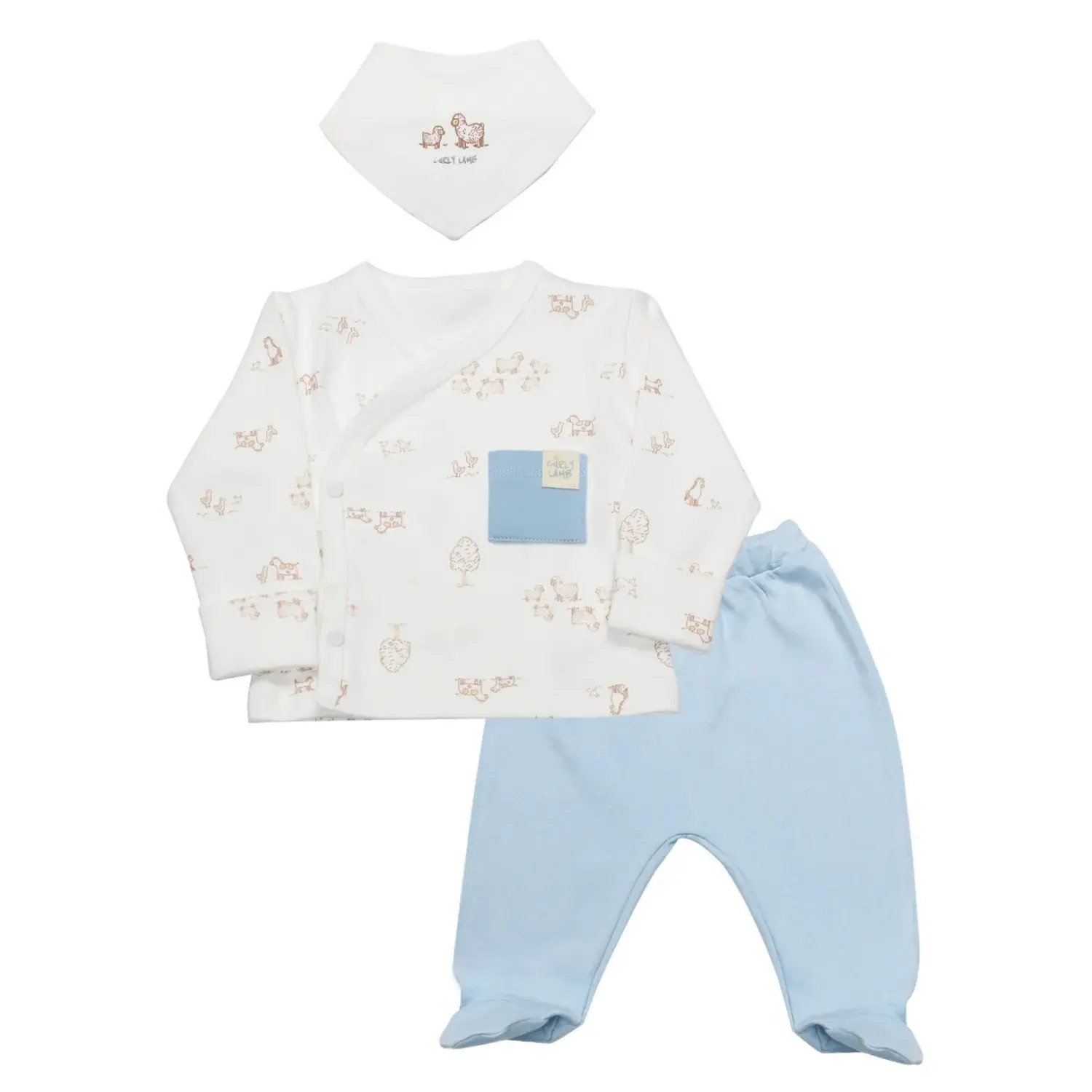 Bistyle Zıbın Takımı 3lü Curly Lamb Bej - Mavi - Ekru
