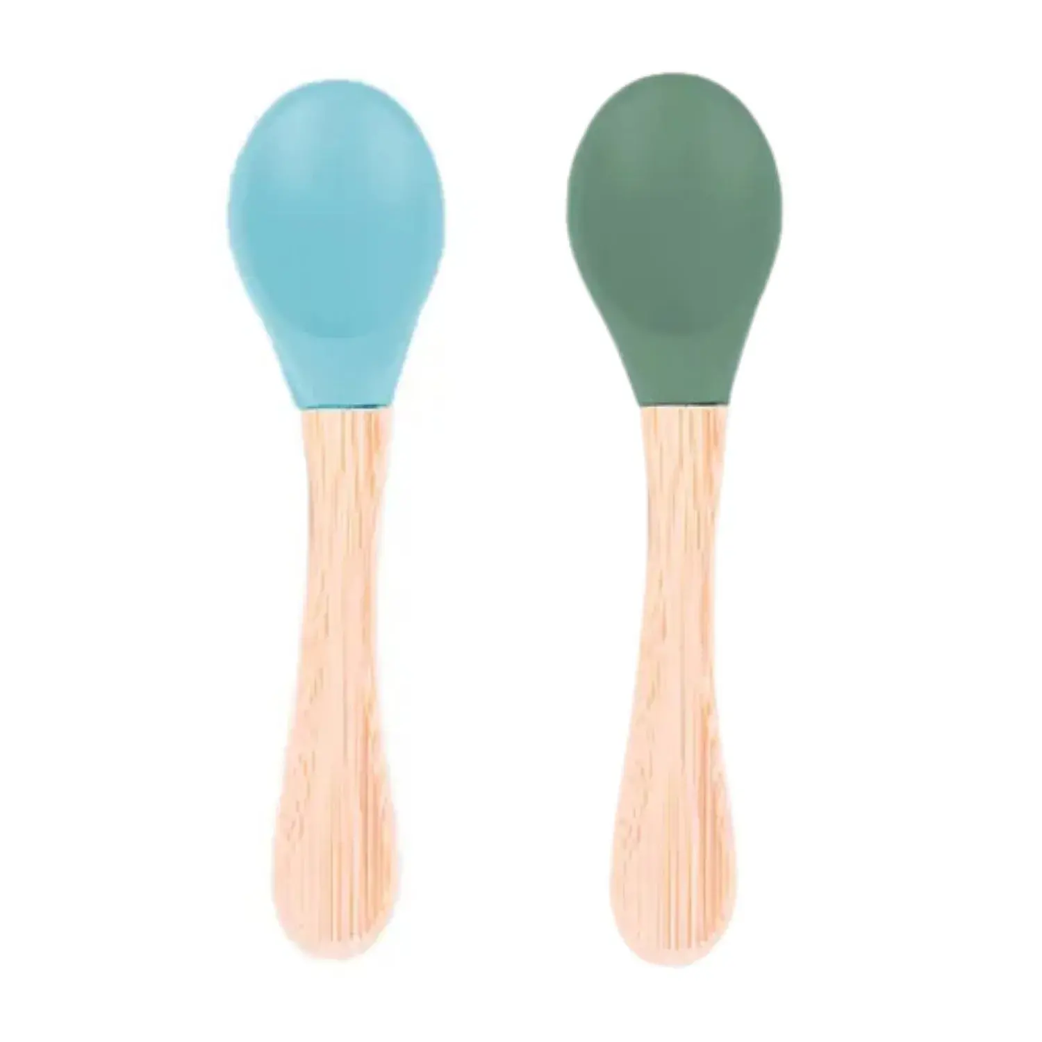 BM Care Bambu Saplı Silikon Mama Kaşığı 9+ ay Mavi-Yeşil 2 li