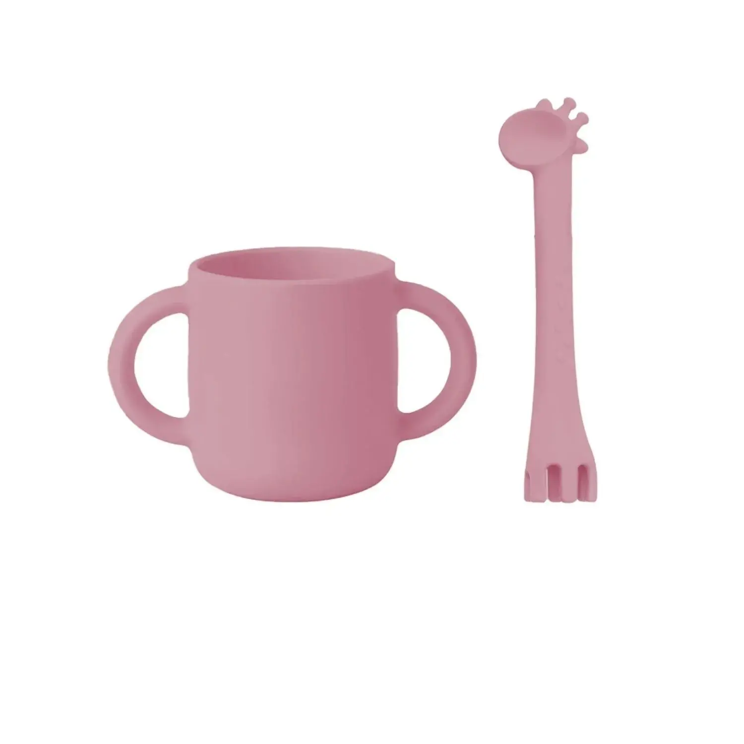 BM Care Mini Bardaklı Mama Çatal Kaşık Zürafa Seti Pembe
