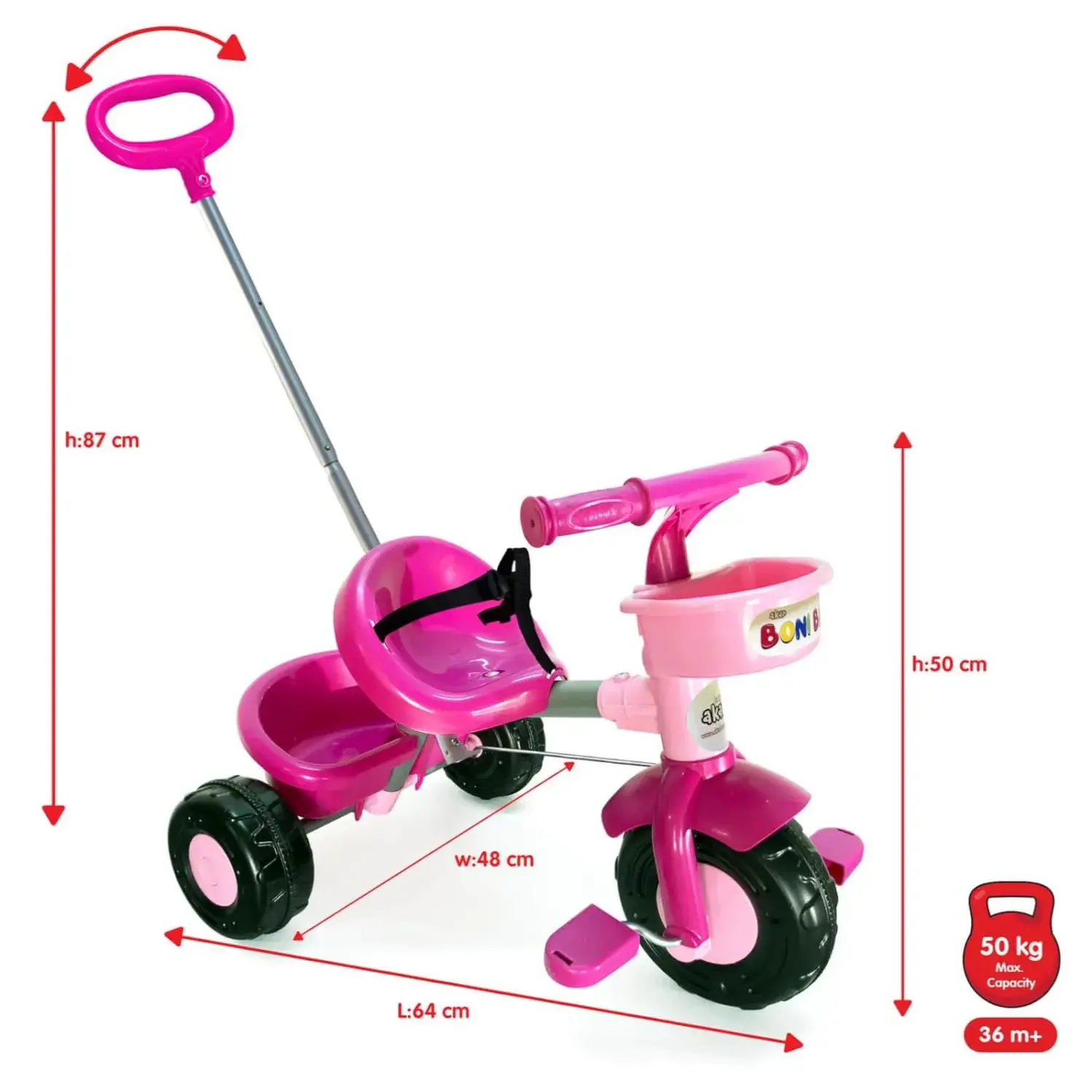 Boni Bike Ebeveyn Kontrollü Bisiklet Pembe