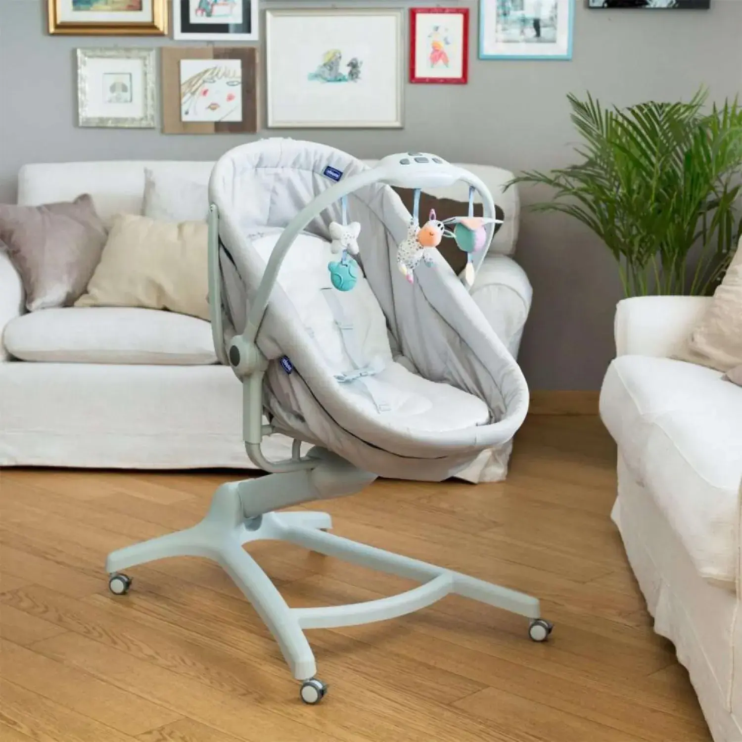 4 frenli tekerleği ile Baby Hug 4in1evin her yerine kolaylıkla ve güvenli bir şekilde taşınabilir.