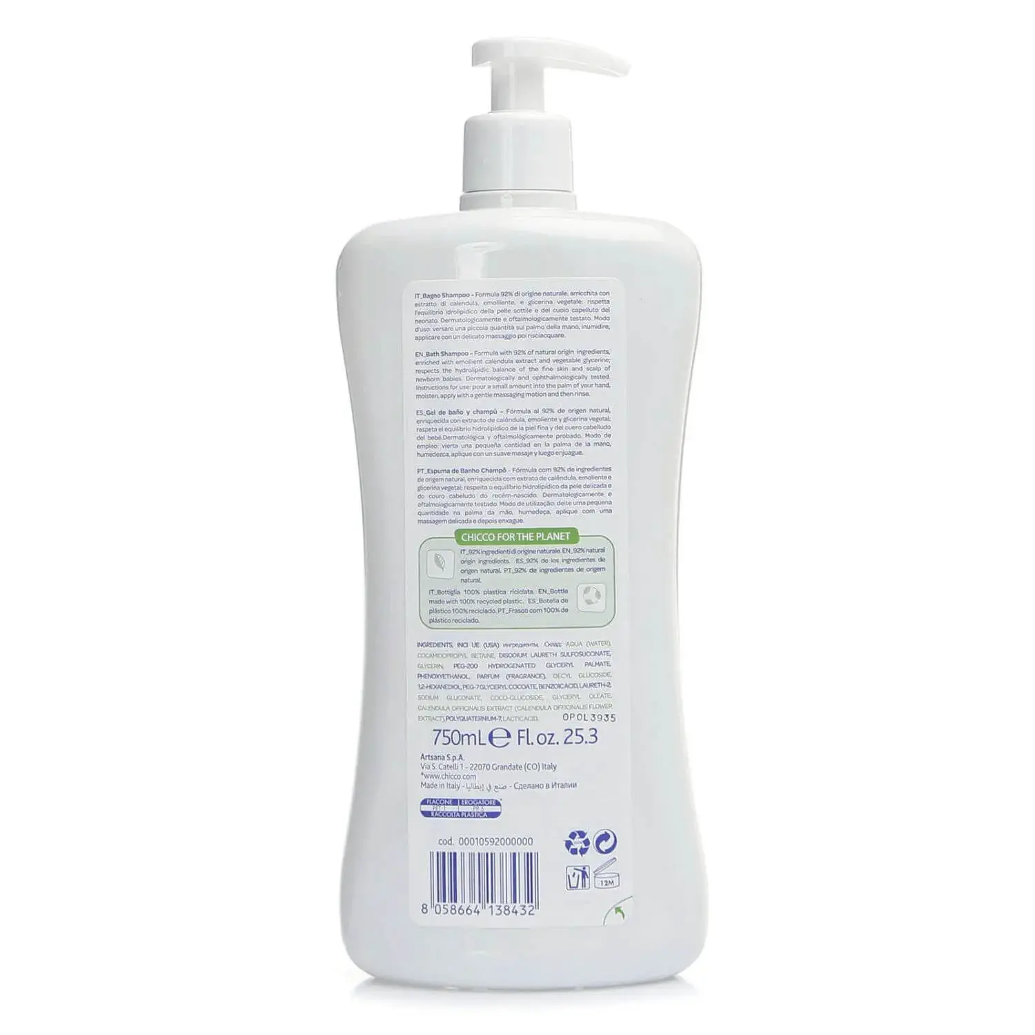 Chicco Baby Moments Doğal Göz Yakmayan Bebek ve Vücut Şampuanı 750ml: Bebeğinizin Hassas Cildini Nazikçe Temizler