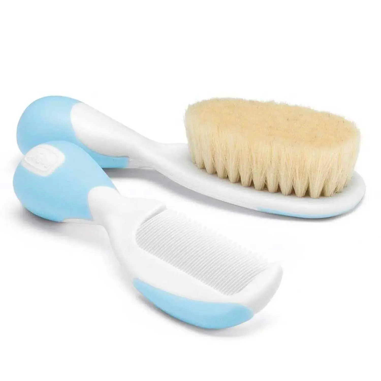 - Chicco'nun fırça ve tarak serisi, hem doğal kıllı fırça hem de bebeğin saçını nazikçe taramanıza izin veren yuvarlak uçlu tarak içerir.