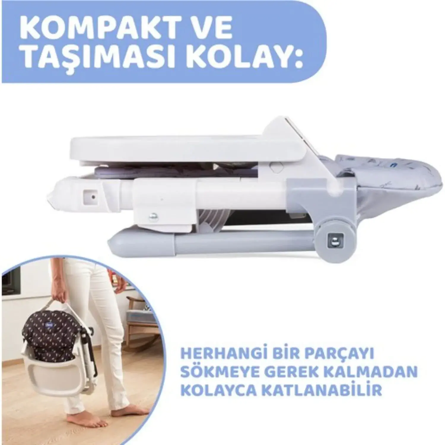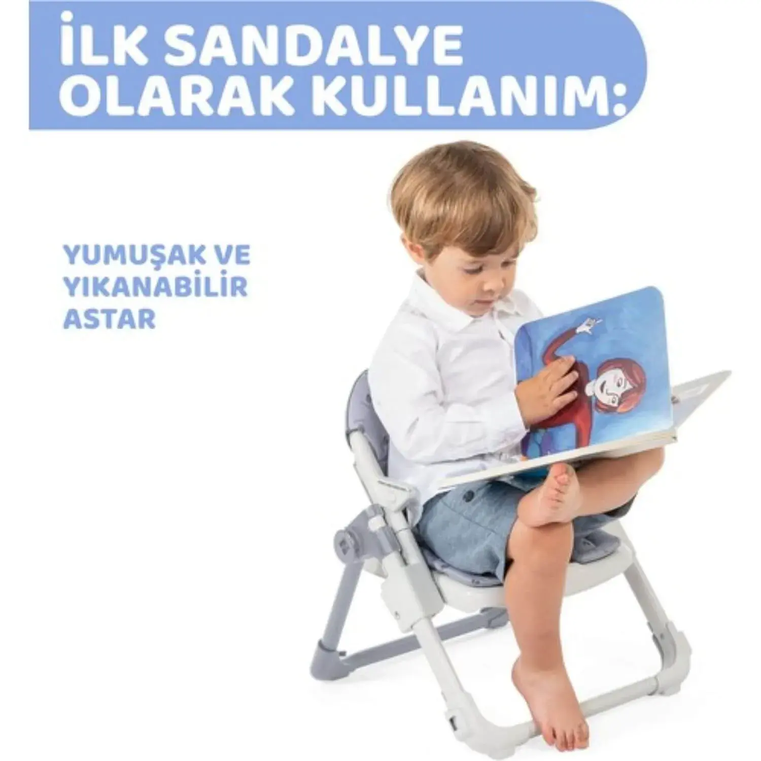 - Bebek sandalyesi: 12-36 ay arasında tepsiyi çıkarıp bebek sandalyesi olarak kullanılabilir.