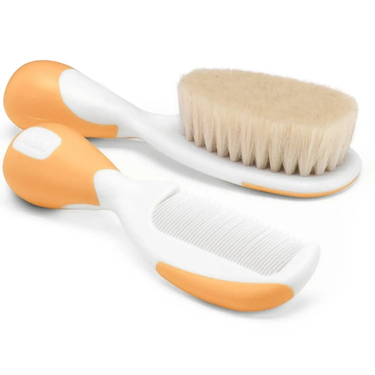 Chicco'nun fırça ve tarak serisi, hem doğal kıllı fırça hem de bebeğin saçını nazikçe taramanıza izin veren yuvarlak uçlu tarak içerir.