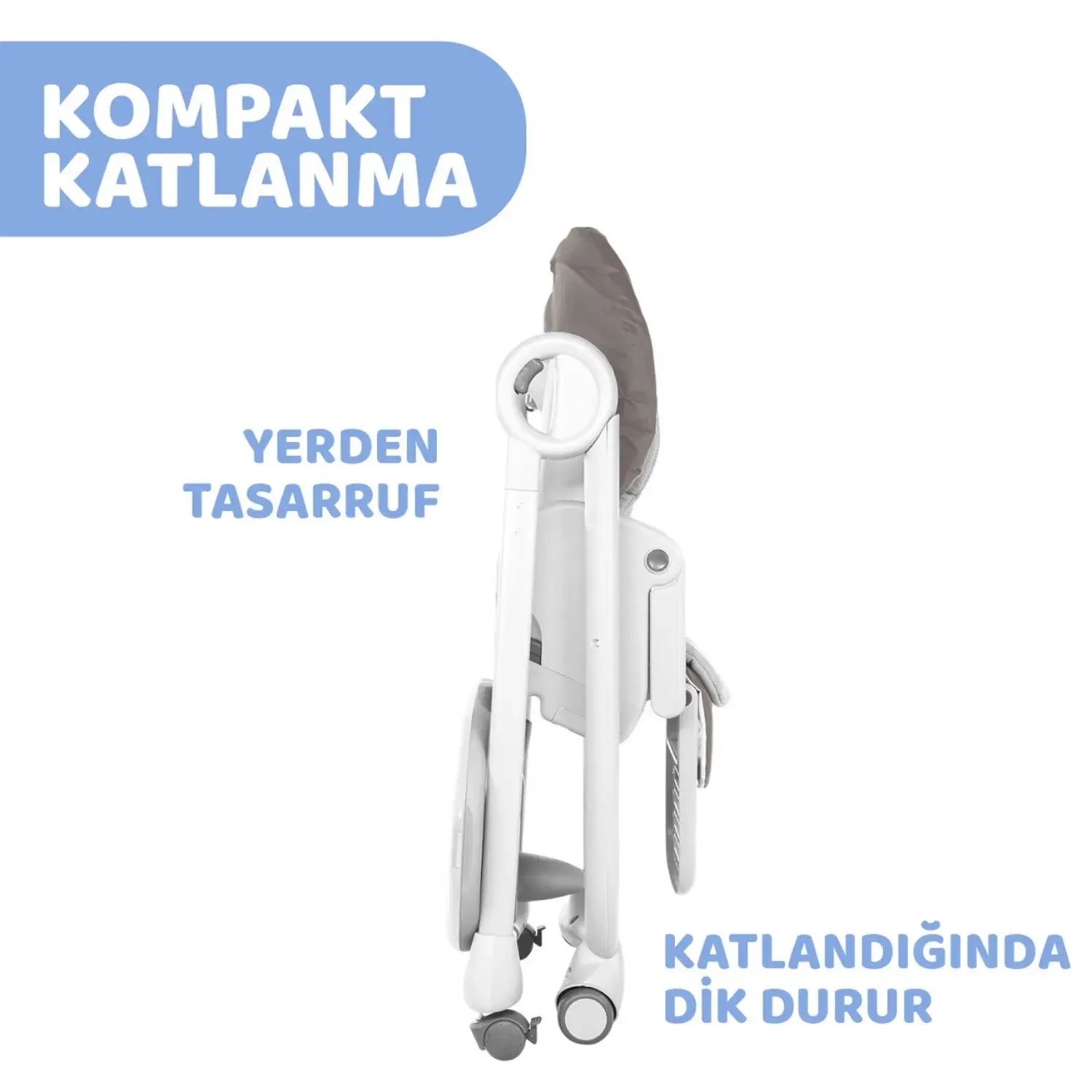 - Katlaması kolaydır, katlandığında kendi kendine ayakta durabilir ve tepsisi arka ayaklarının üzerine asılabilir.