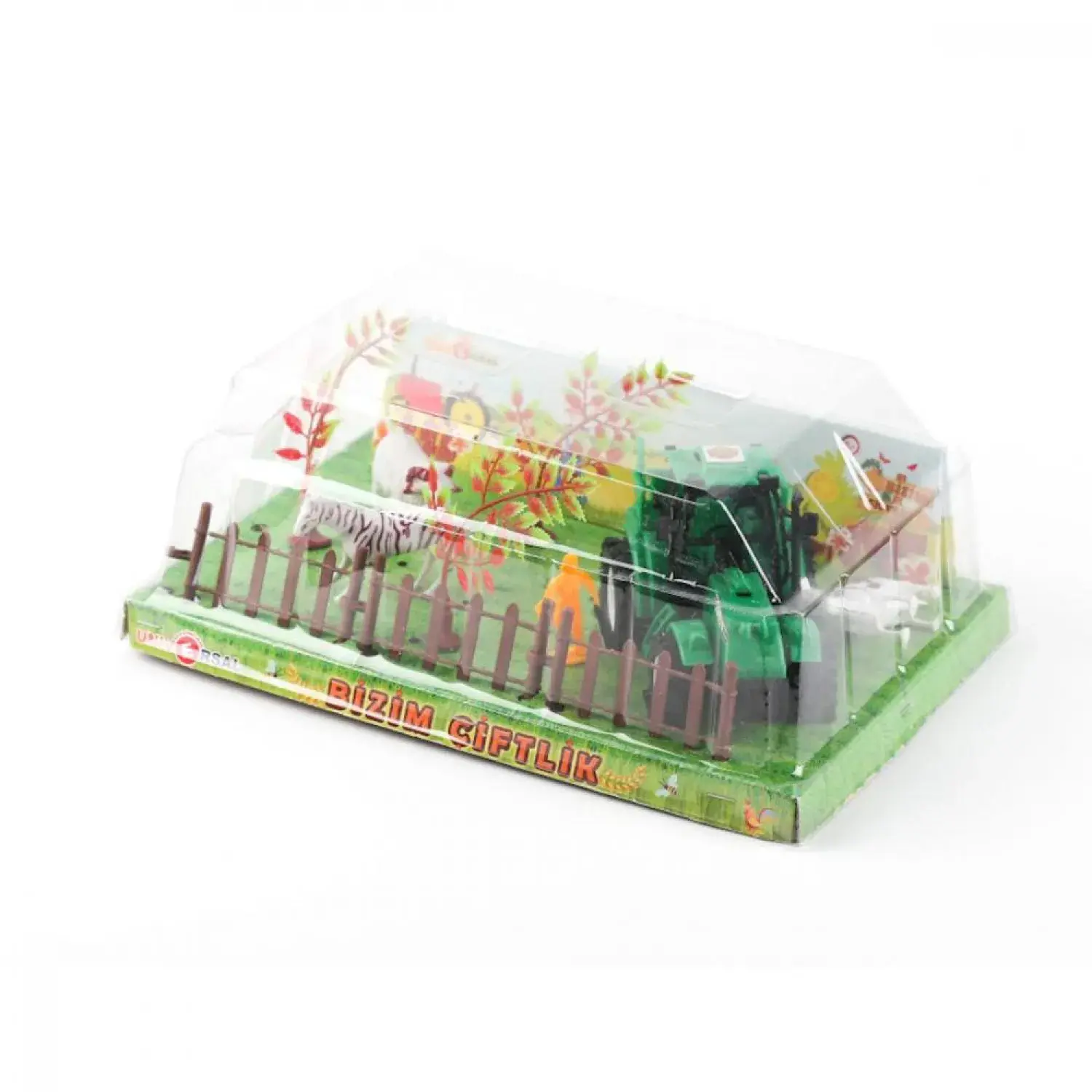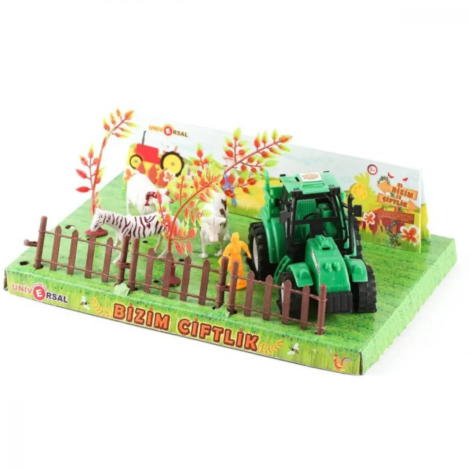 - Kutu içeriğinde 1 adet traktörle birlikte 3 adet çiftlik hayvanı ,1 adet çiftçi ve 3 adet ağaç vardır.