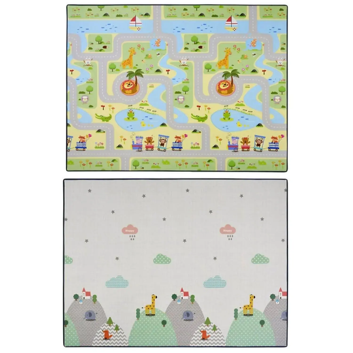 Çift taraflı kullanılabilir, her iki yüzeyinde farklı görsel tasarımları bulunur. Modunuza göre seçim yapmanıza imkan tanır. Oturma odasında modern bir atmosfer yaratırken bebek odasında sevimli bir atmosfer yaratabilirsiniz.