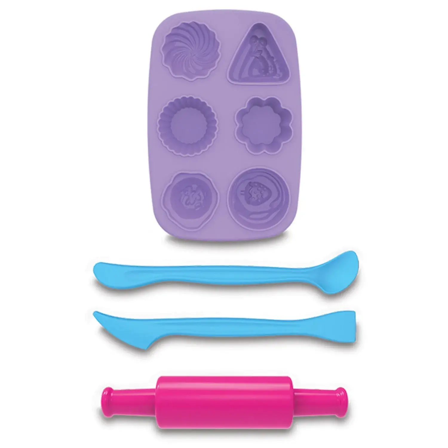 - Setin içinde ayrıca kek kalıpları ve diğer aksesuarlar bulunur, böylece çocuklar, kap kek gibi tatlı şekiller yapabilir veya yaratıcı oyunlar oynayabilirler.