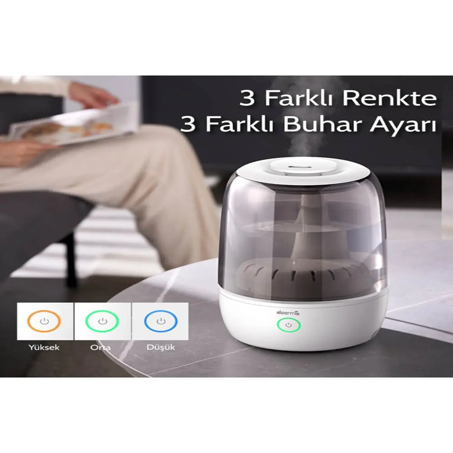- 3,5 litrelik su kapasitesiyle tüm gün süren nemlendirme.