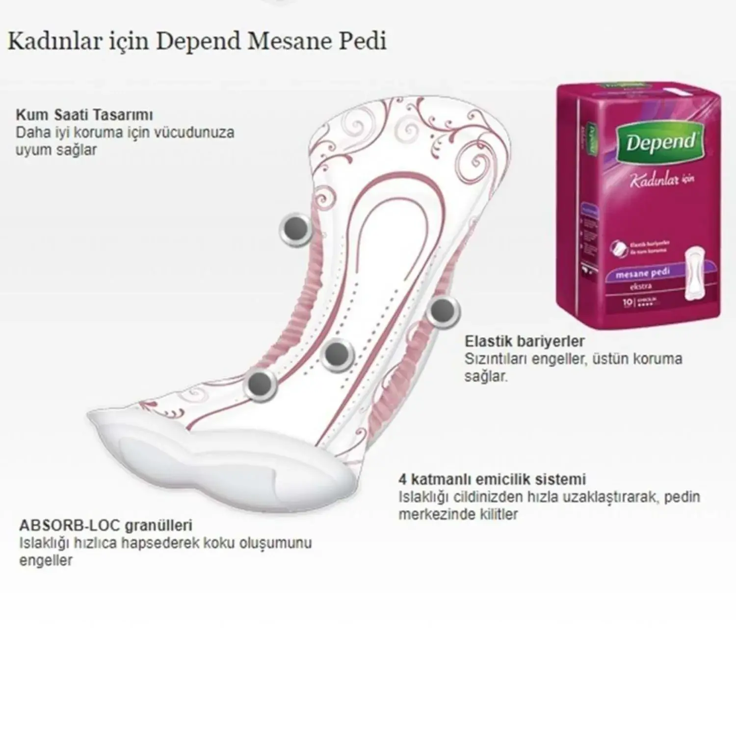 - Depend Mesane Pedi Ekstra, kadınlara özel bir üründür.